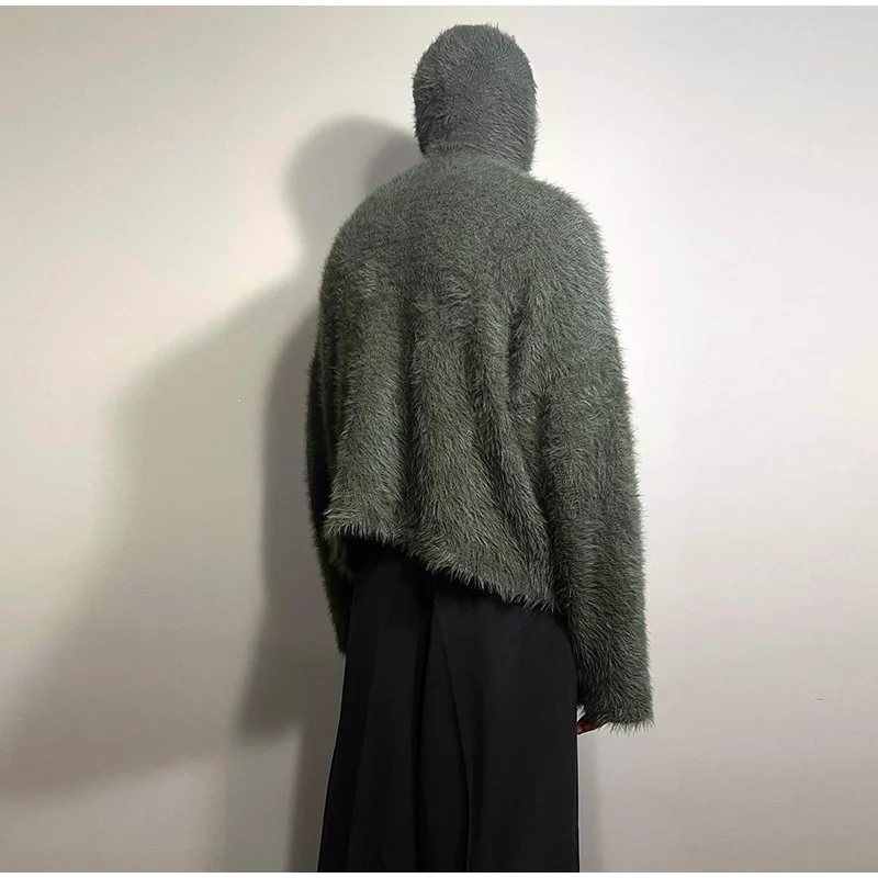 Wiaofellas - Men's Plush Mohair Sweater Hoodie Casual Male O Neck Long Sleeve Knitted Hooded Pullover Cashmere Loose Male Solid Knit Jumpers