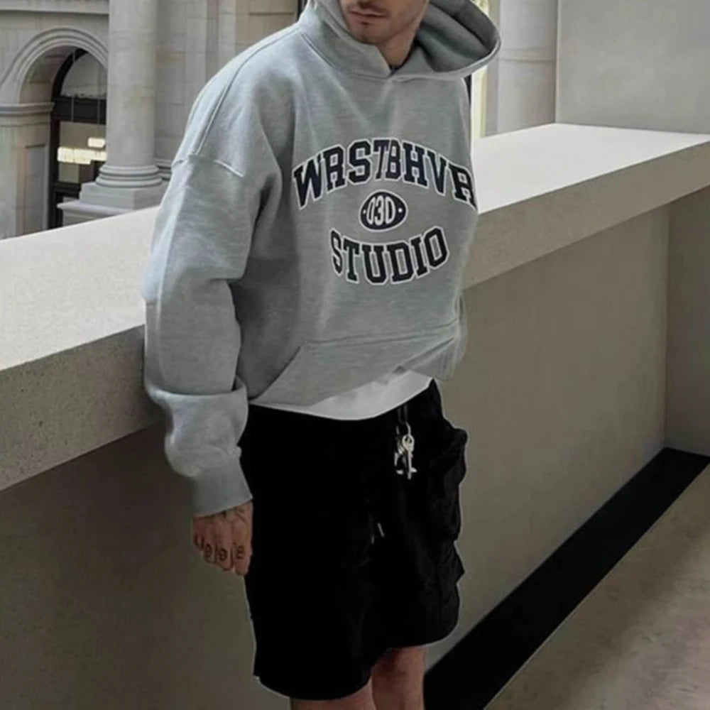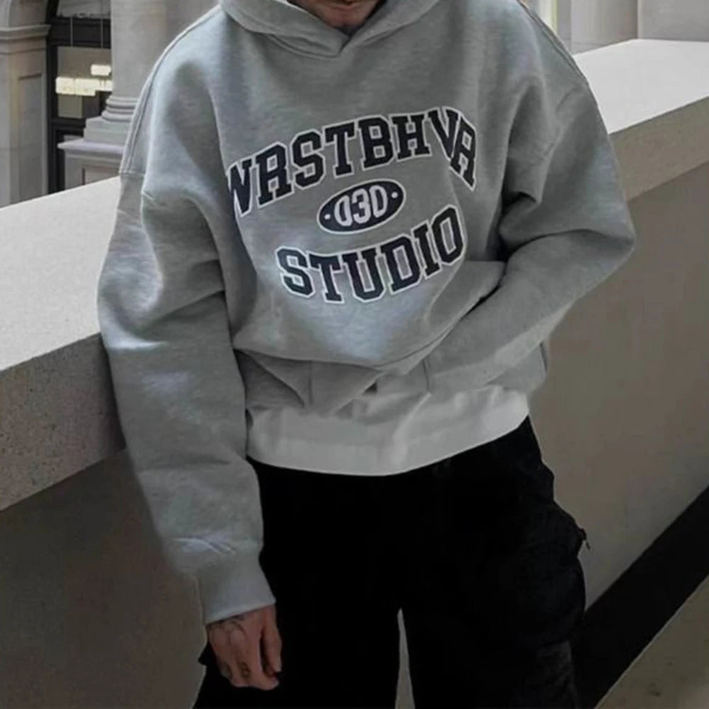 WIAOFELLAS - Autumn And Winter Men's Fashionable Hoodie Trendy Hip-Hop High Street Retro Letter Printed American Style Loose Pullover