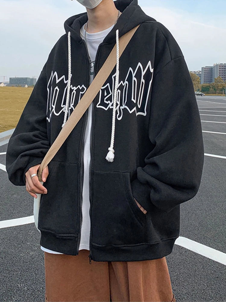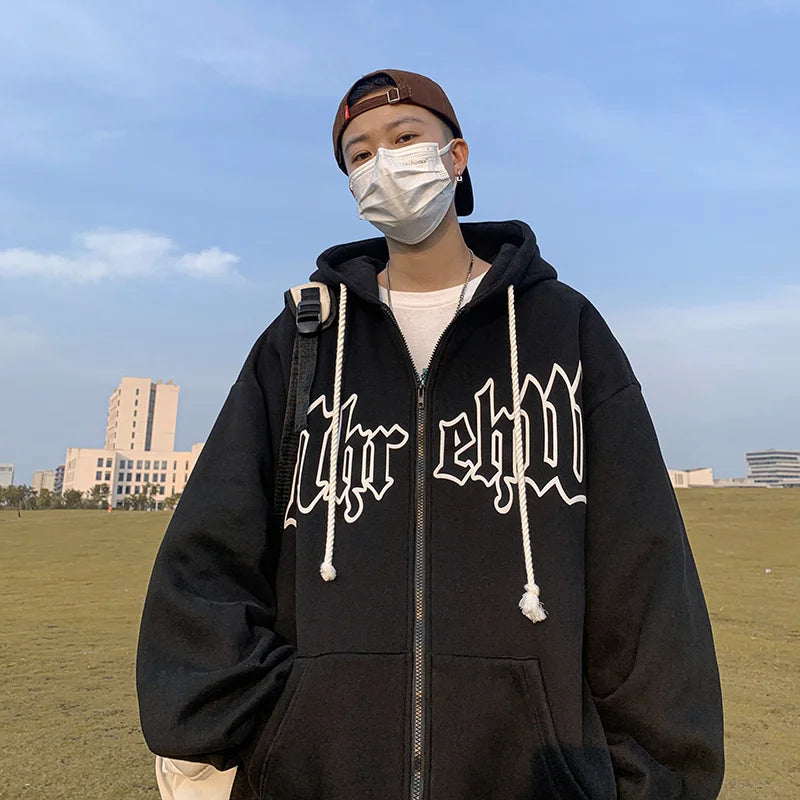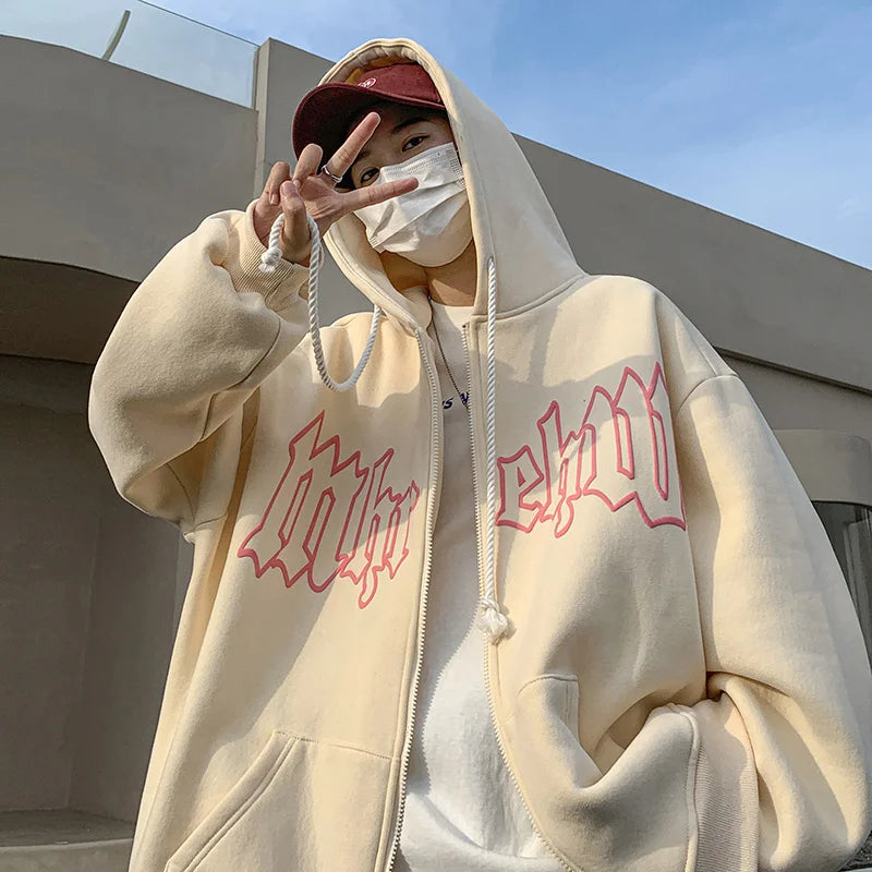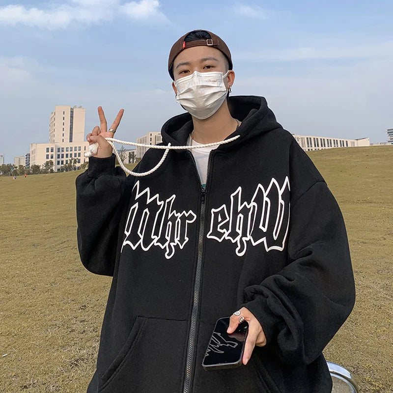 WIAOFELLAS - Autumn Goth Letter Foam Print Zip up Hoodies For Men Y2K Streetwear Loose Sweatshirts Female Hip Hop Oversized Hoodie Tracksuit