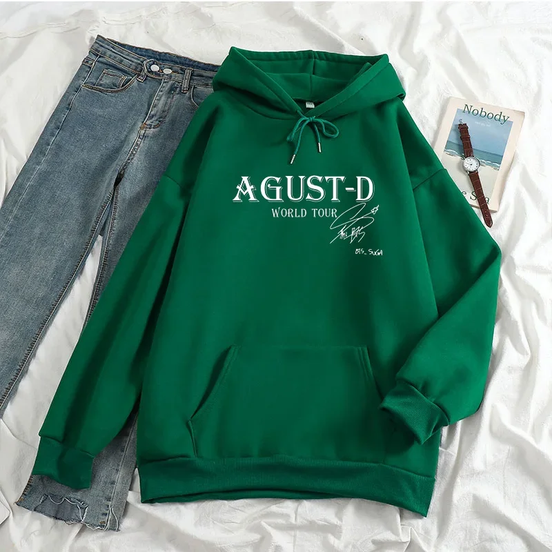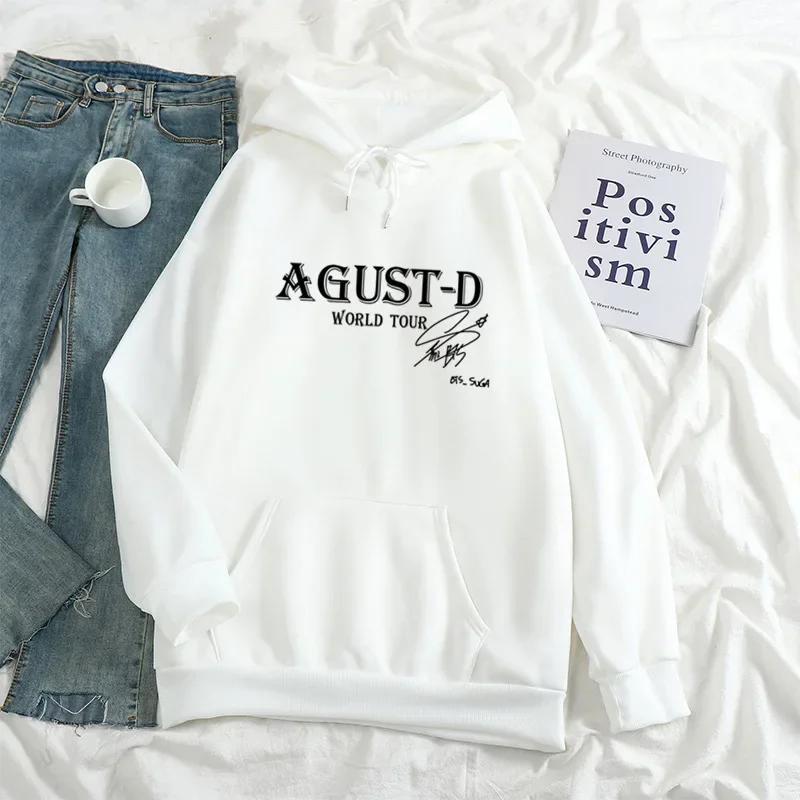 WIAOFELLAS - Loose Fit Long Sleeve Hoodie Sweatshirt AGUST-D WORLD TOUR Casual Unisex Winter New Arrival Comfortable Streetwear Style