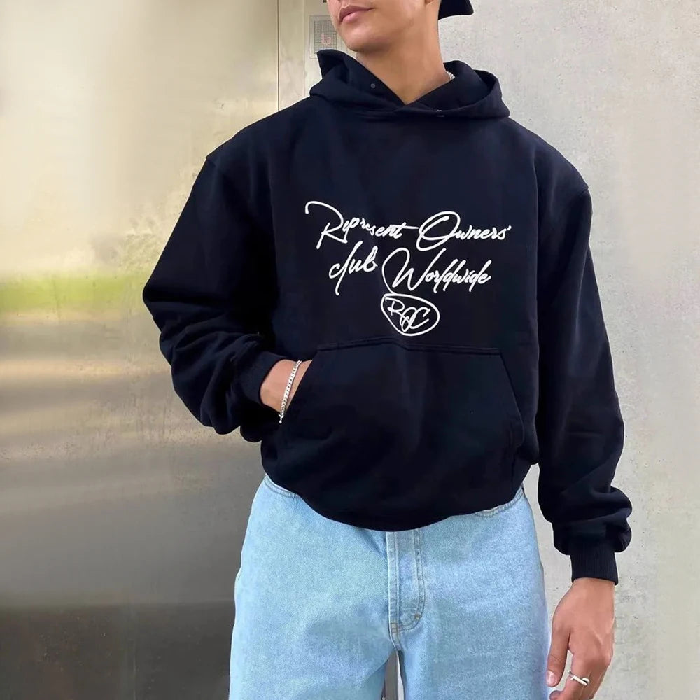 WIAOFELLAS - Men's Casual Hoodie Fashionable Trendy Letter Print American Style Street Youthful Hooded Sweatshirt Spring And Autumn