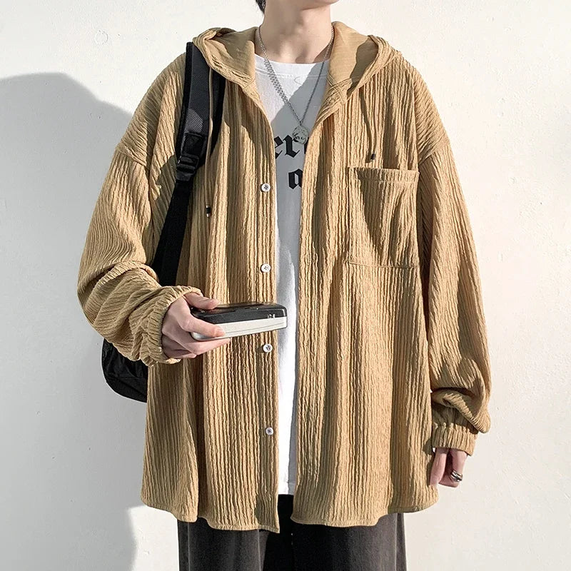WIAOFELLAS - Men's Jacket Youth Solid Coats Oversize Casual Sport Outdoor Coat Male Full Zip Fashion Hoodies