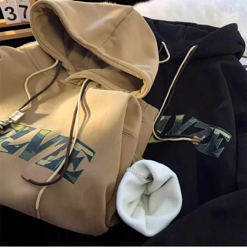 WIAOFELLAS - New in Camouflage Letter Printed Hooded Sweatshirts For Men Autumn Punk Hip Hop Fashion Hoodies Y2K Streetwear Fleece Hoody