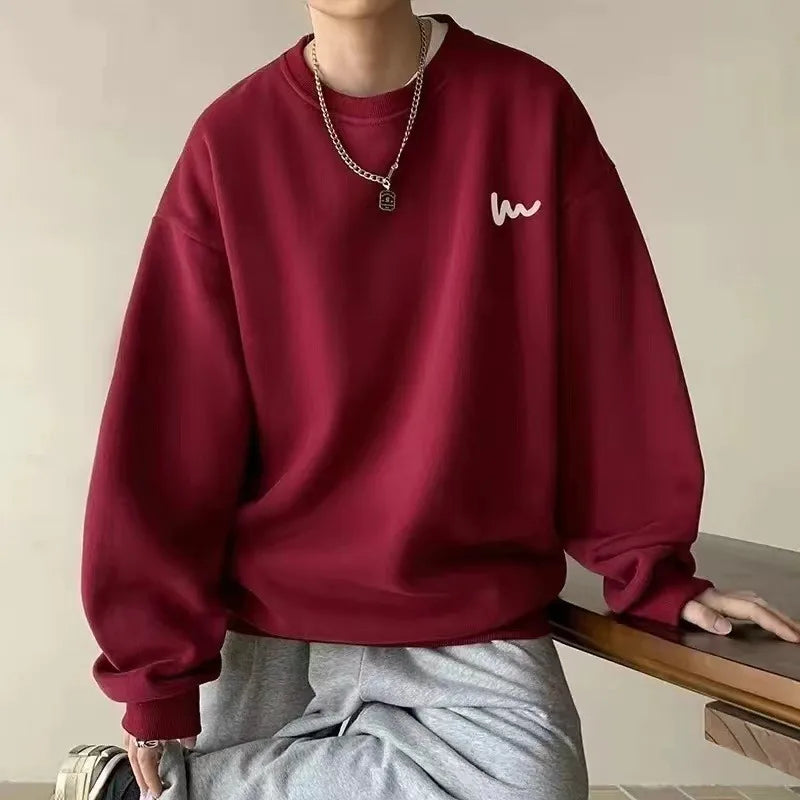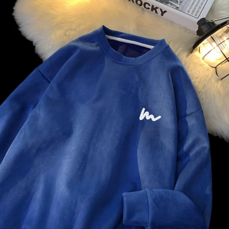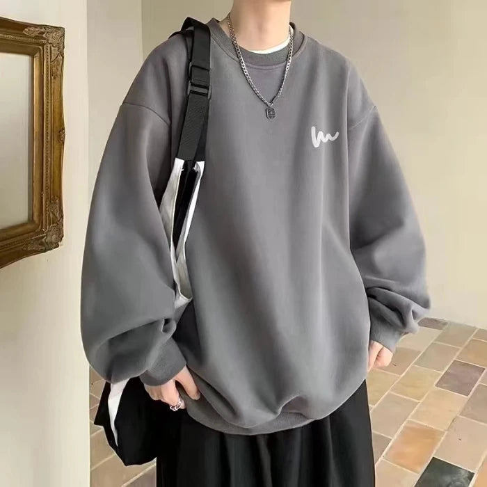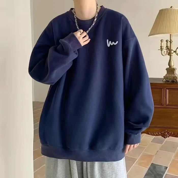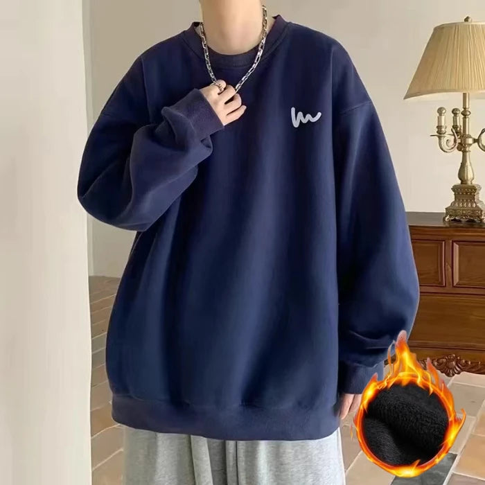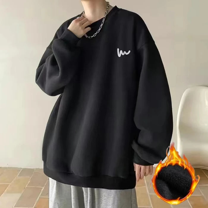 WIAOFELLAS - No Hat Hoodies Men Baggy Plus Velvet Thicken Sweatshirts Handsome Warm Print Design Korean Fashion All-match High Street Daily