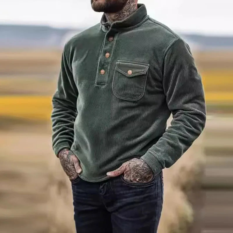 WIAOFELLAS - Retro Pure Corduroy Hoodie Men Clothing Casual Stand Collar Button Sweatshirts Men Fall Winter Long Sleeve Pocket Streetwear Top