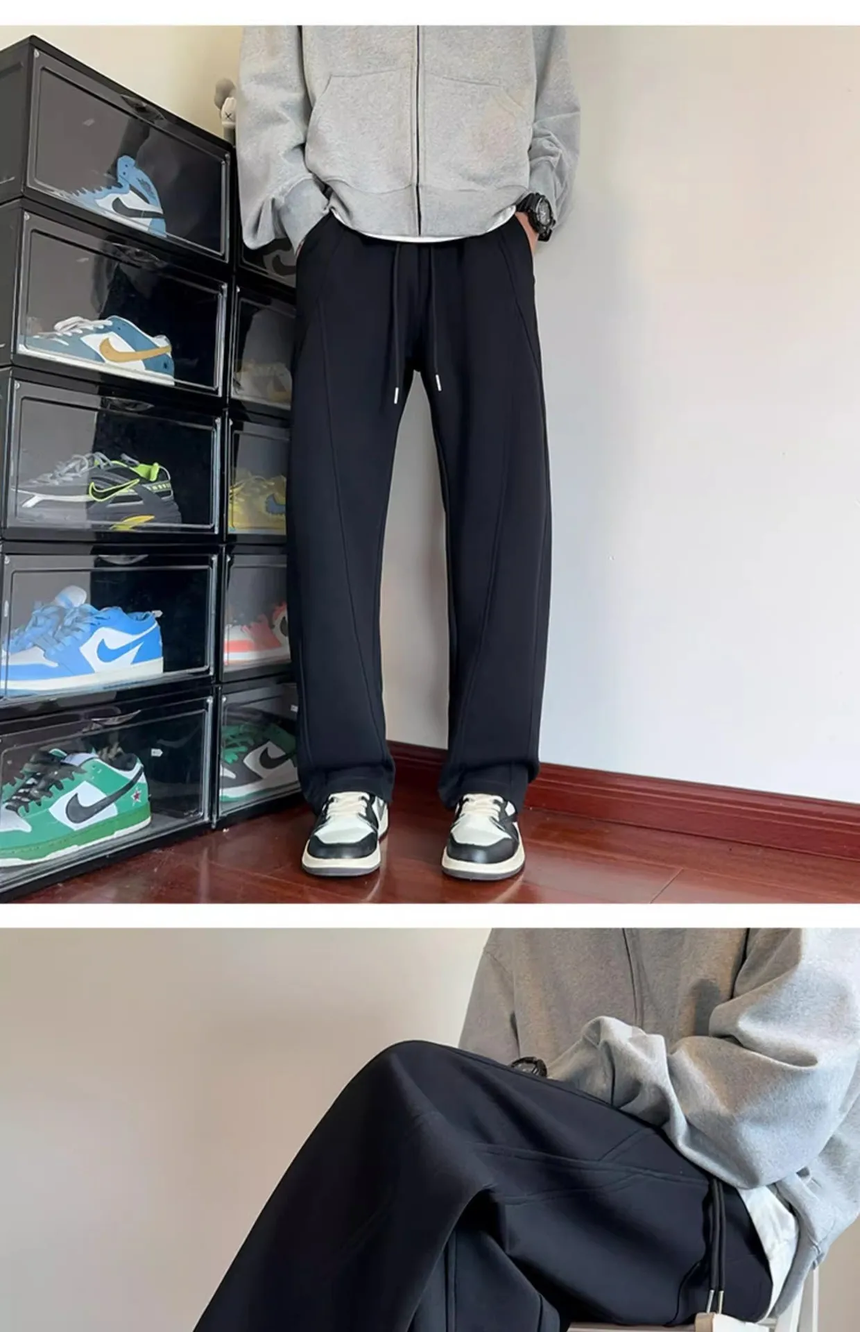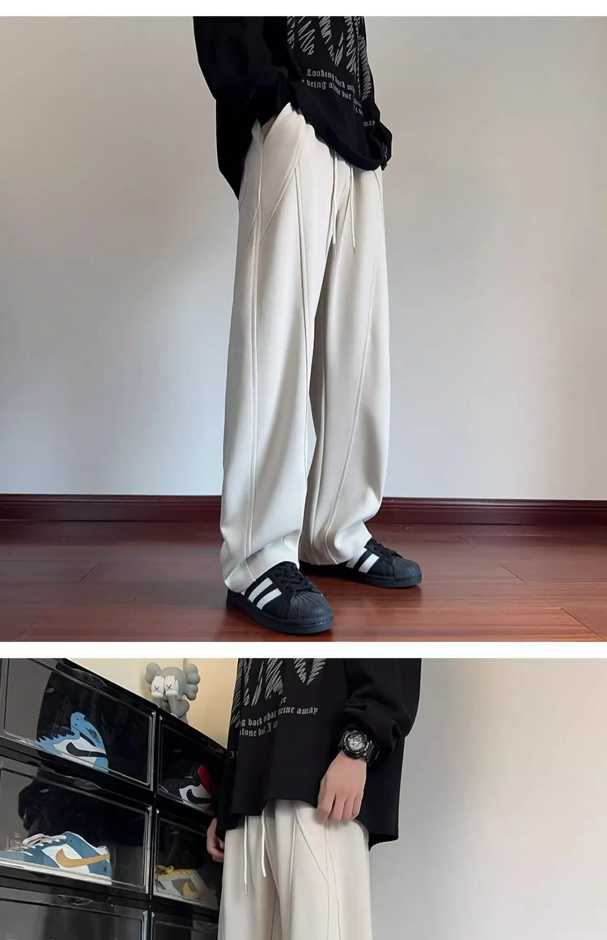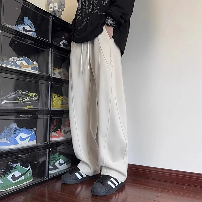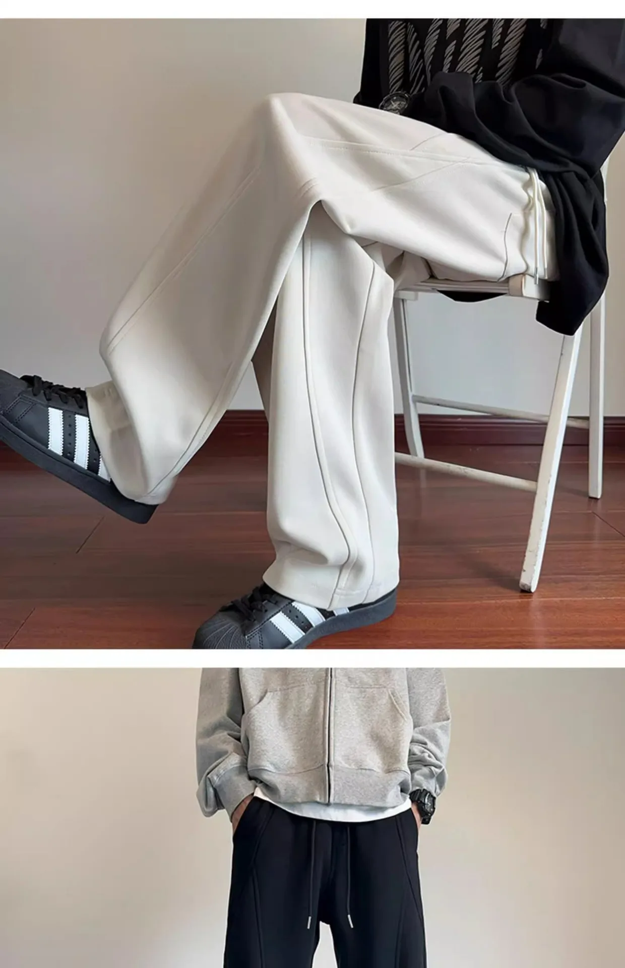 WIAOFELLAS  -  Scimitar Hoodies Men's Autumn Winter Style Plus Velvet American Wide-leg Casual Pants Loose Straight Sports