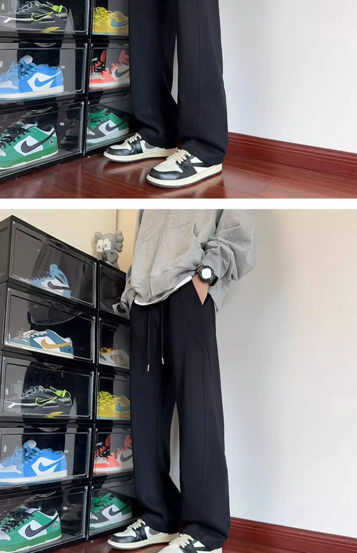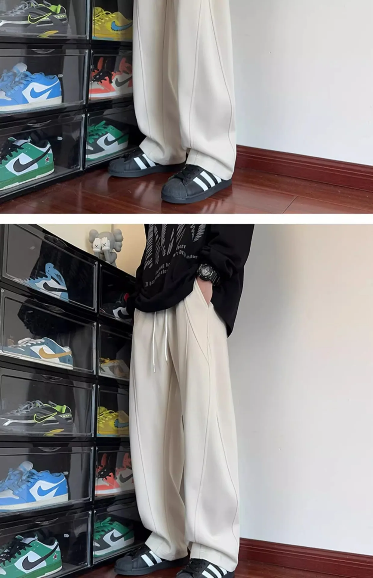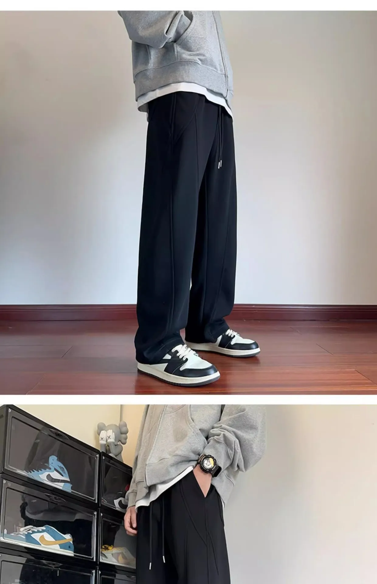 WIAOFELLAS  -  Scimitar Hoodies Men's Autumn Winter Style Plus Velvet American Wide-leg Casual Pants Loose Straight Sports