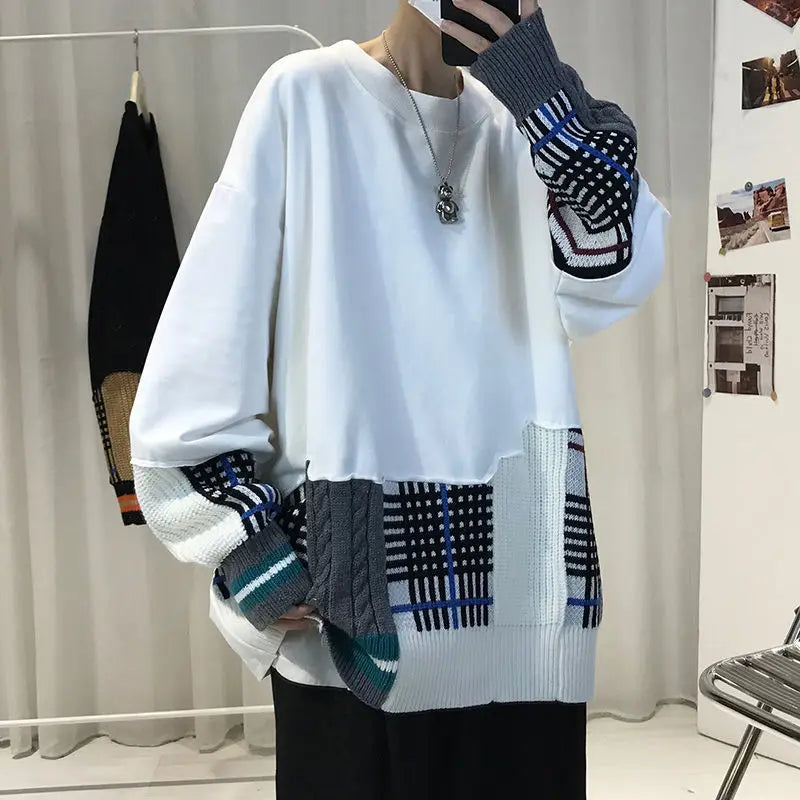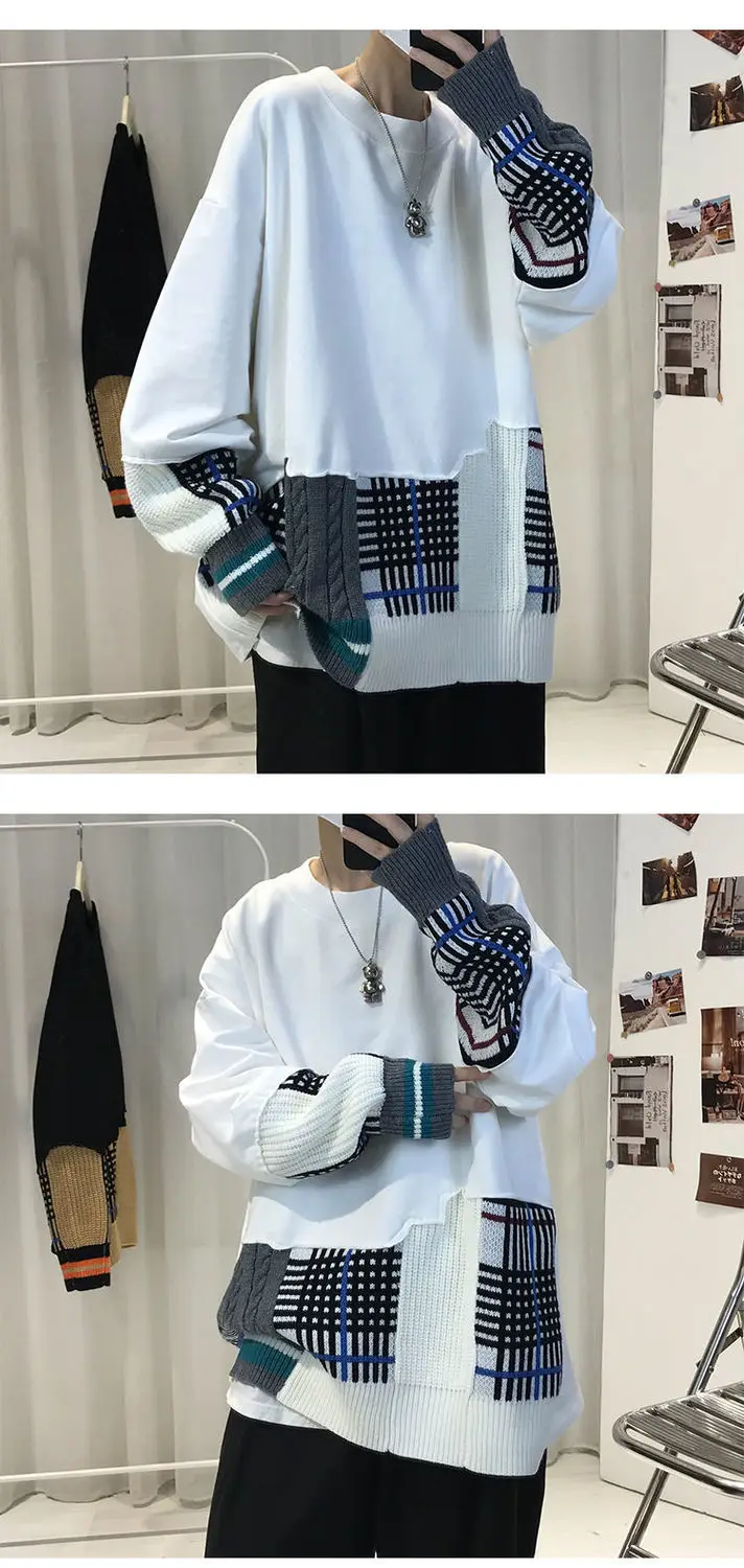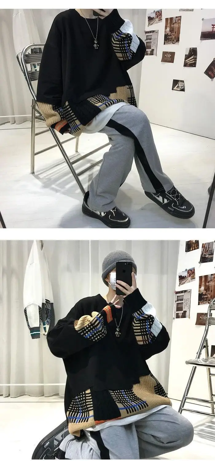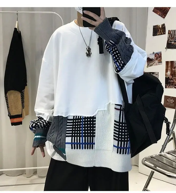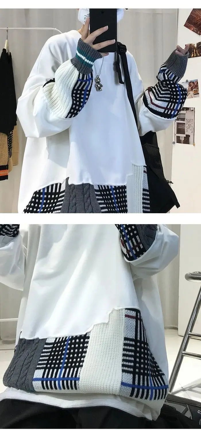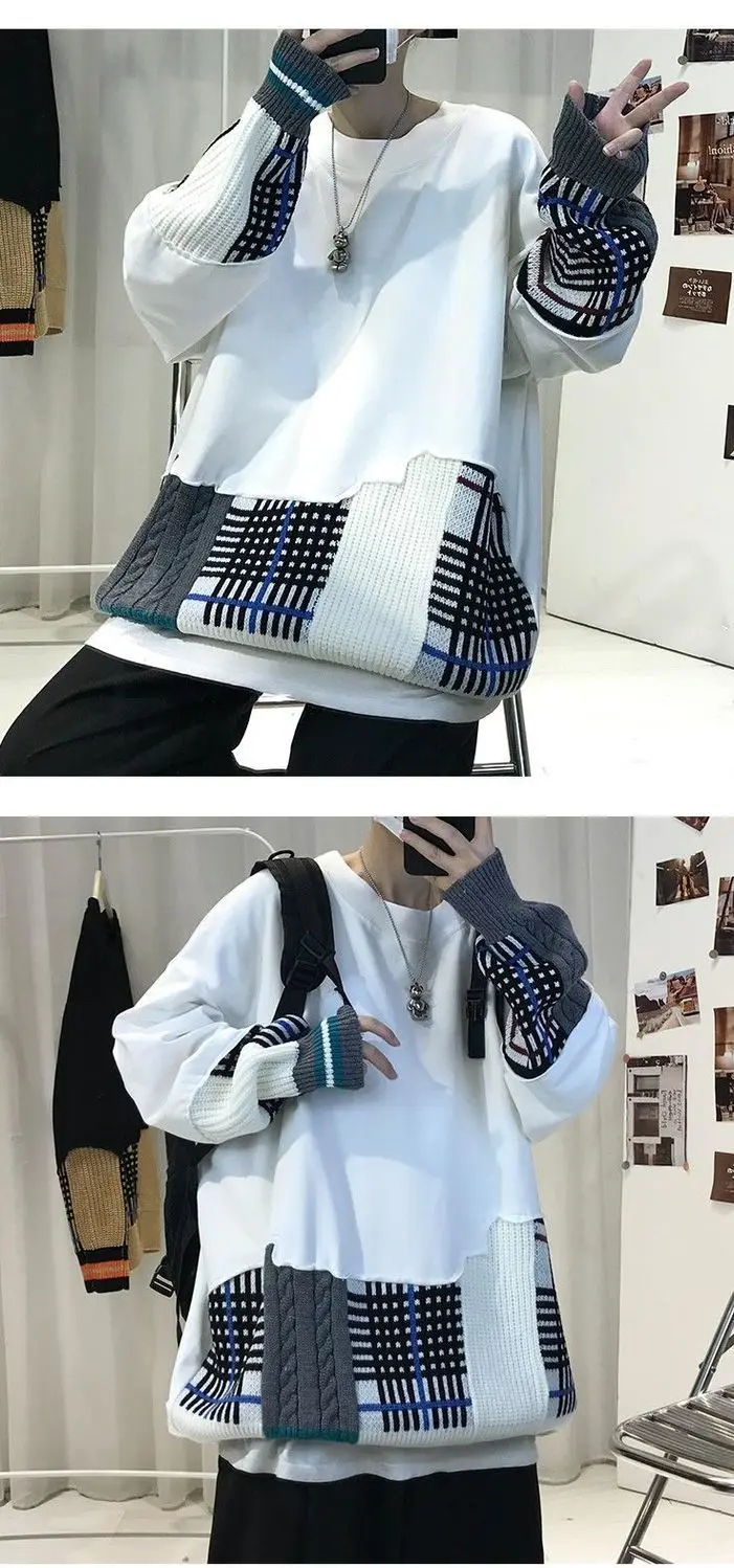 WIAOFELLAS - Thick Hoodie for Men Trendy and Cool Loose Fitting Jacket Thick and Versatile Long Sleeved Knitted Sweater