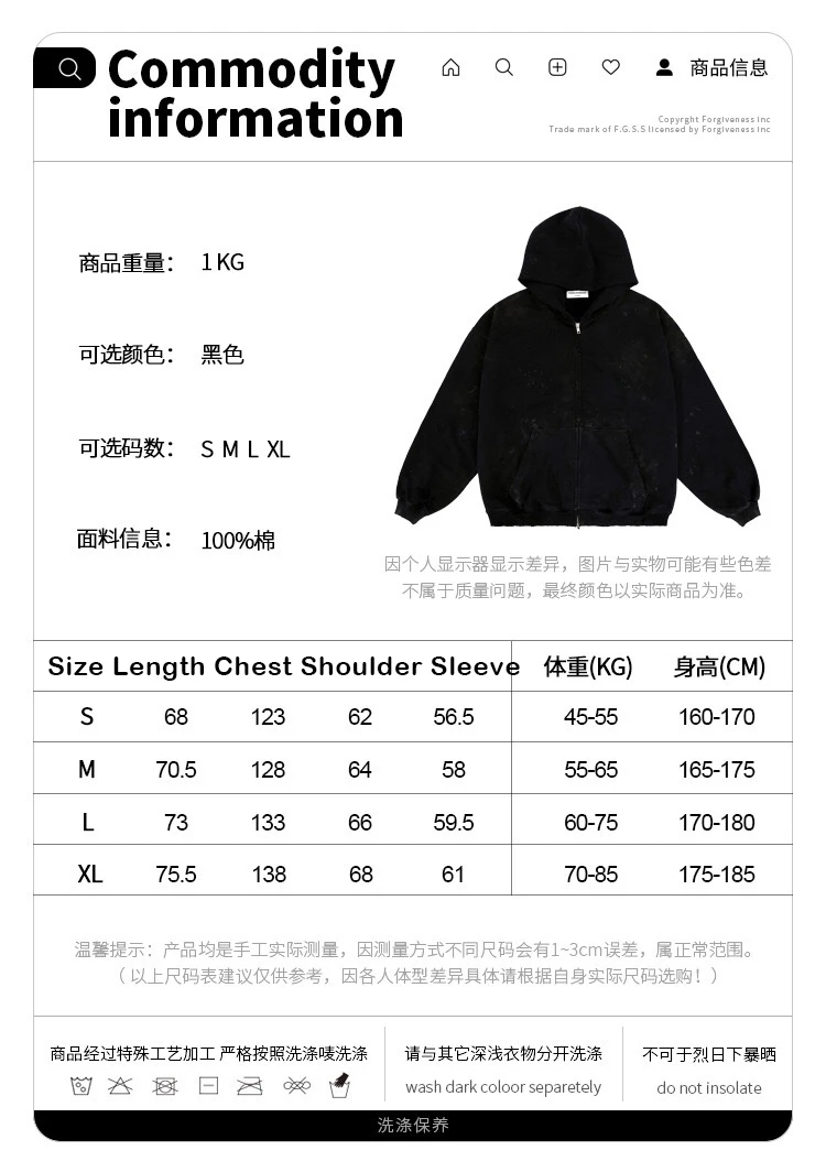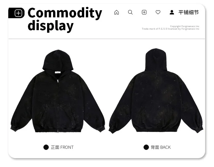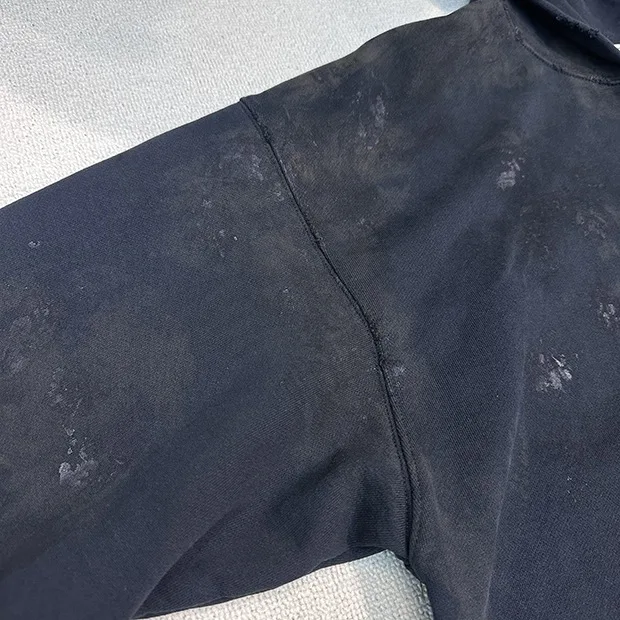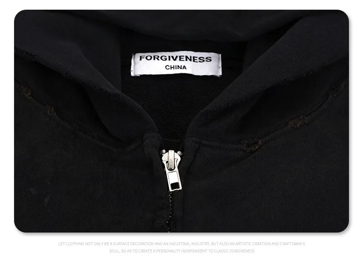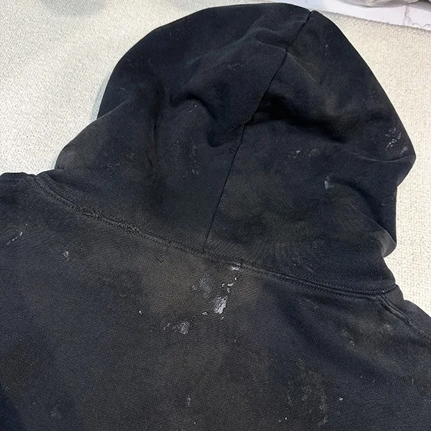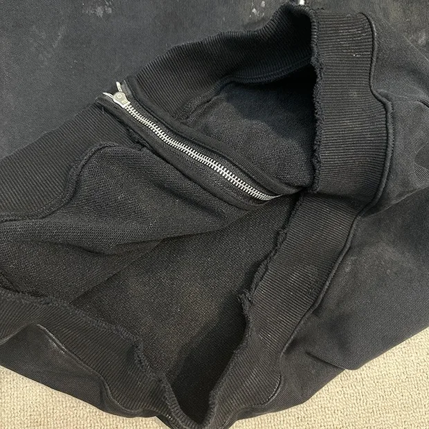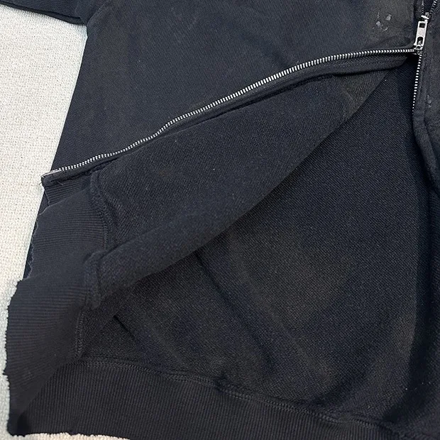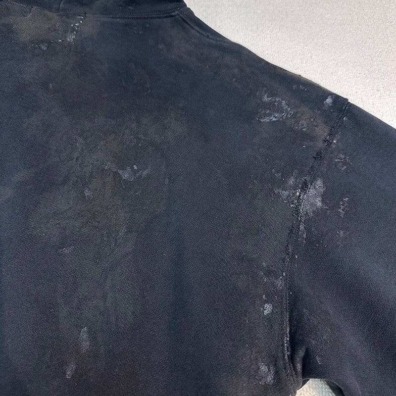 Wiaofellas - Worn scuffed and stained loose zippered hoodie