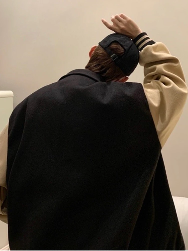 Wiaofellas Autumn Winter Tweed Baseball Jacket Men's American Vintage Thickened Coat Couple Preppy Letter Embroidery Niche Jackets