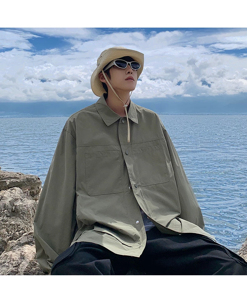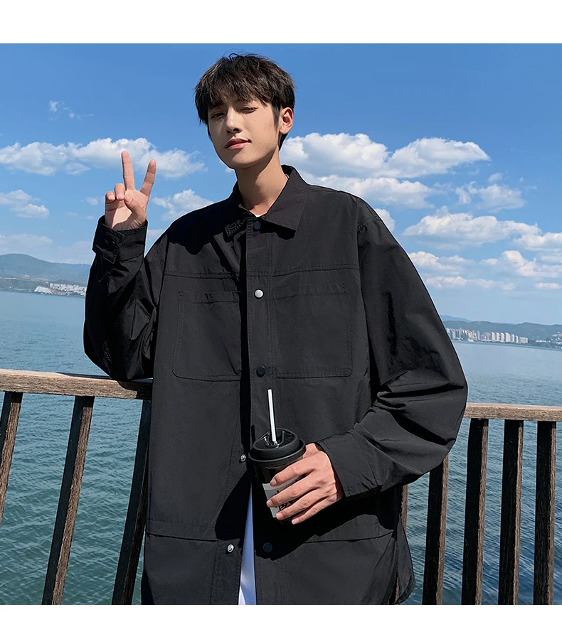 Wiaofellas Spring Autumn New Fashion Top Casual Thin Overcoat Men's Work Clothes Long Sleeve Solid Color Shirt Lightweight Outdoor Jacket