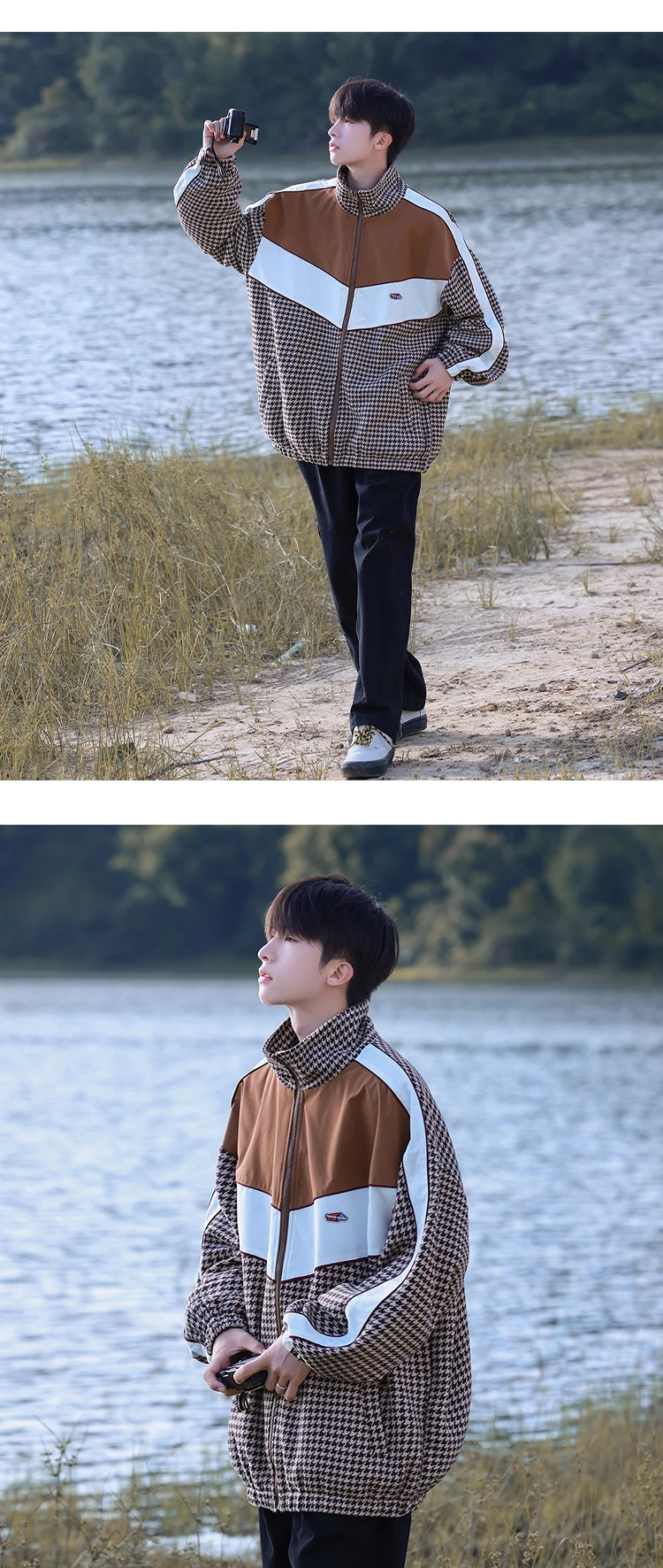 Wiaofellas Autumn Fashion New Port Plaid Coat Men's High Quality Jacket Fashion Men Clothing Daily Handsome Casual Overcoat Chic Parka