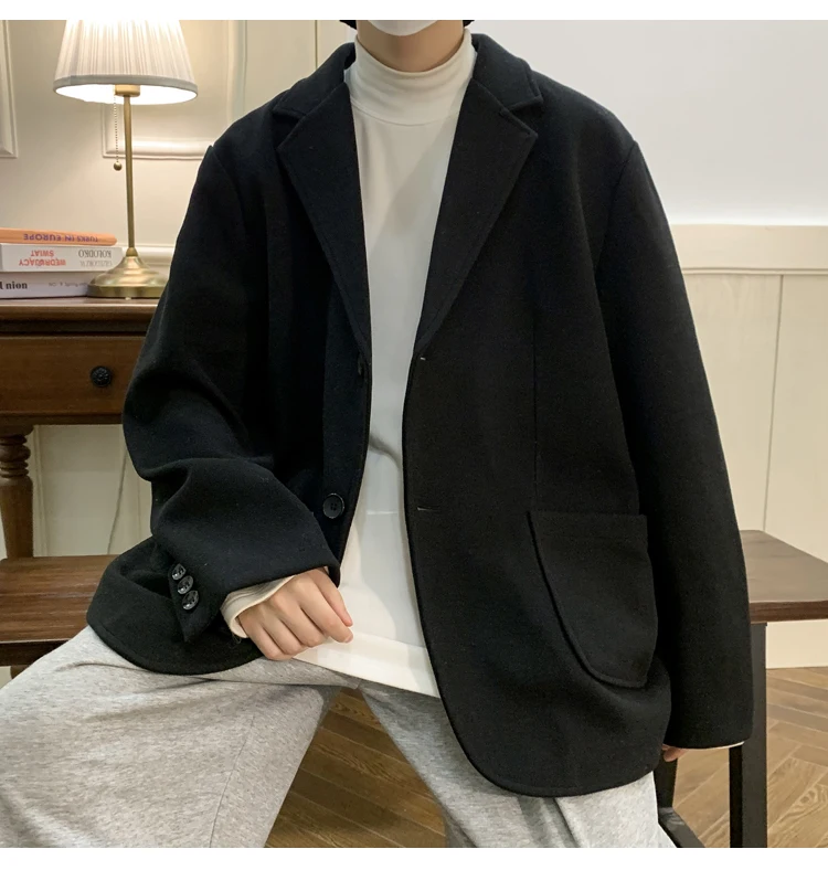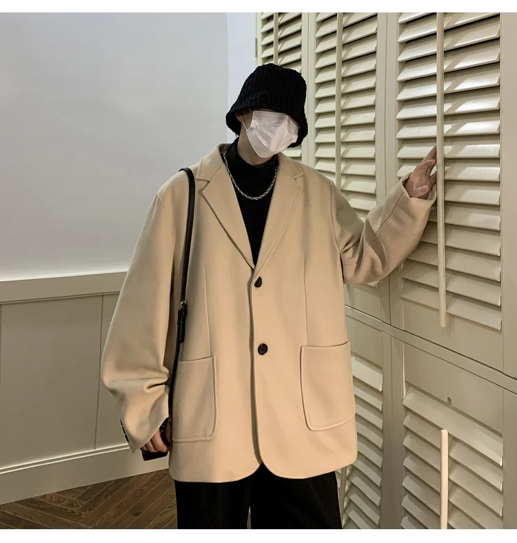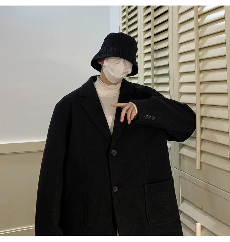 Wiaofellas Winter New Split Fabric Woolen Suit Men's Loose Coat Top Coat Fashion Handsome Casual Men Clothing Daily Unisex Overcoat Jacket