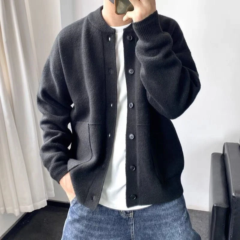 Wiaofellas Fashion Long Sleeve Solid Knit Cardigans Men Clothing Button-up O-Neck Sweaters Coats Vintage Winter Jackets Streetwear