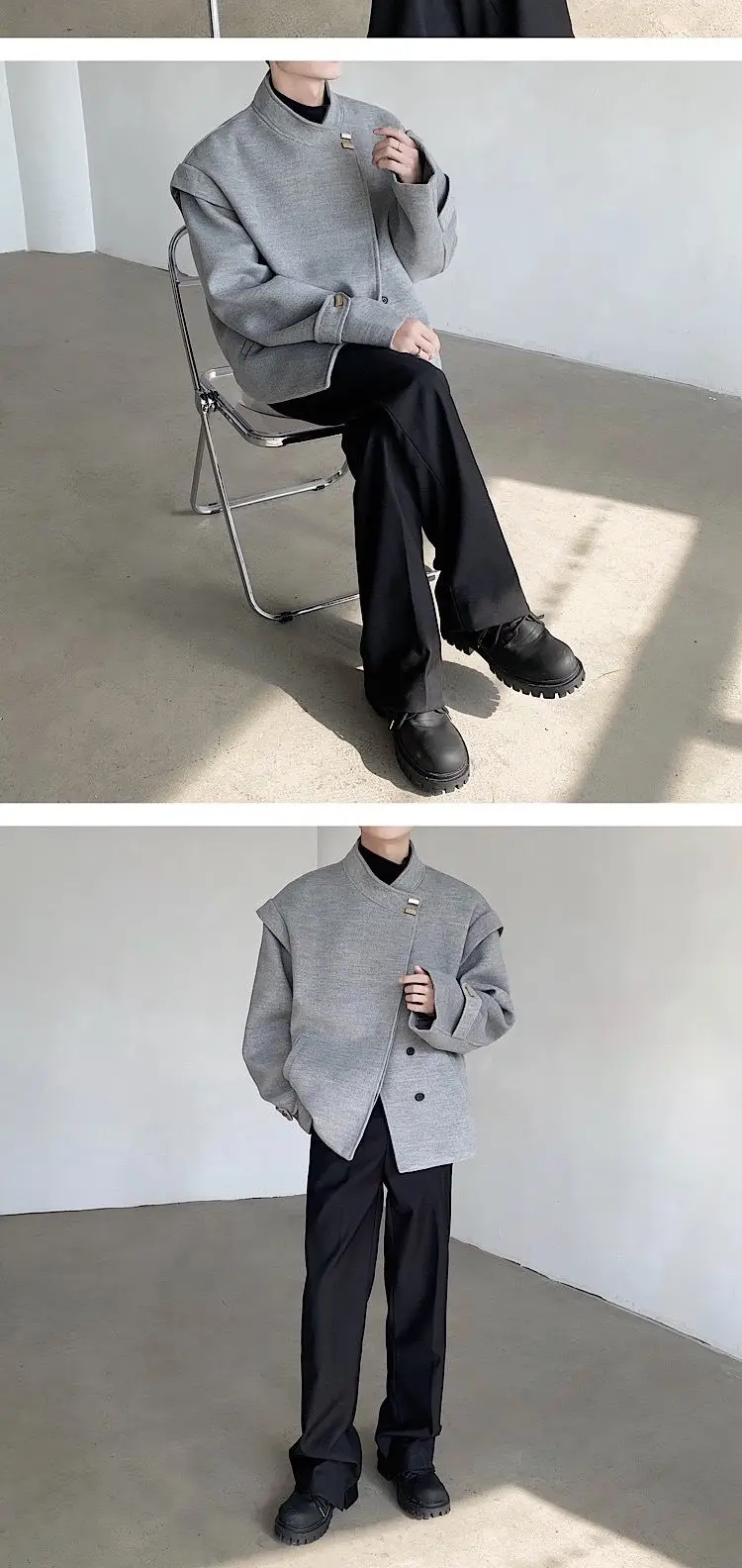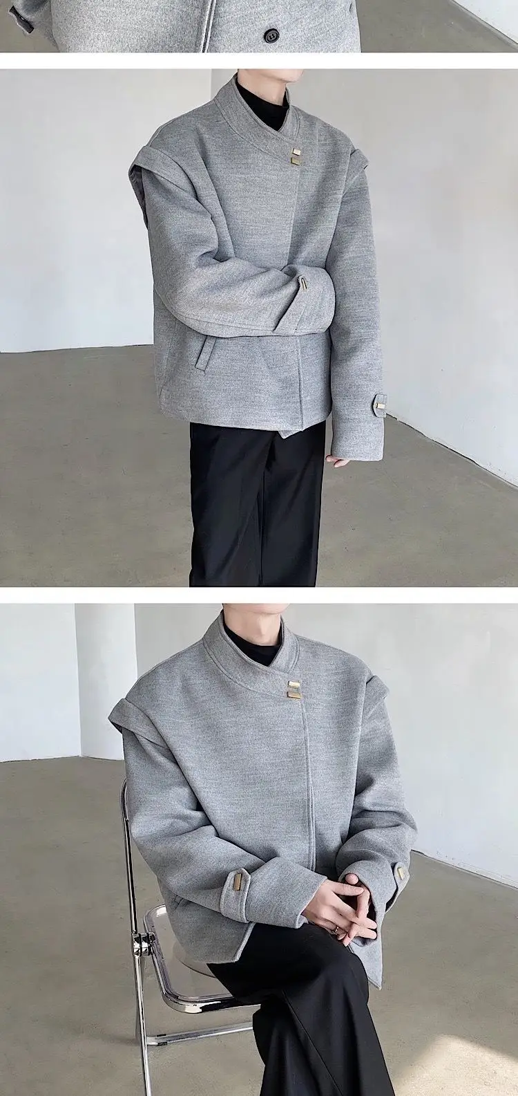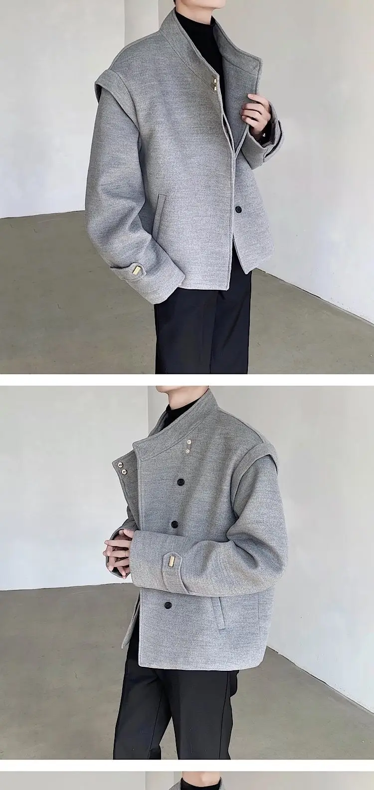 Wiaofellas Winter Woolen Coat Men Warm Light Gray Thick Woolen Jacket Men Korean Clothes Loose Short Woolen Coat Mens Thickened Jacket
