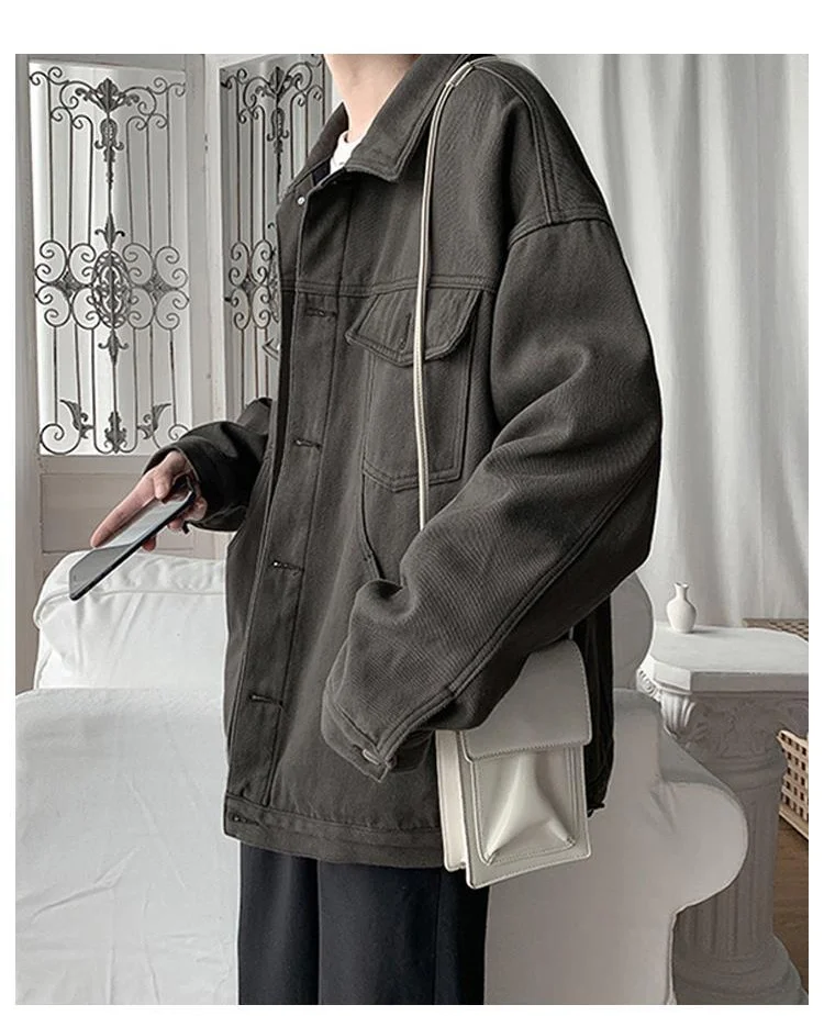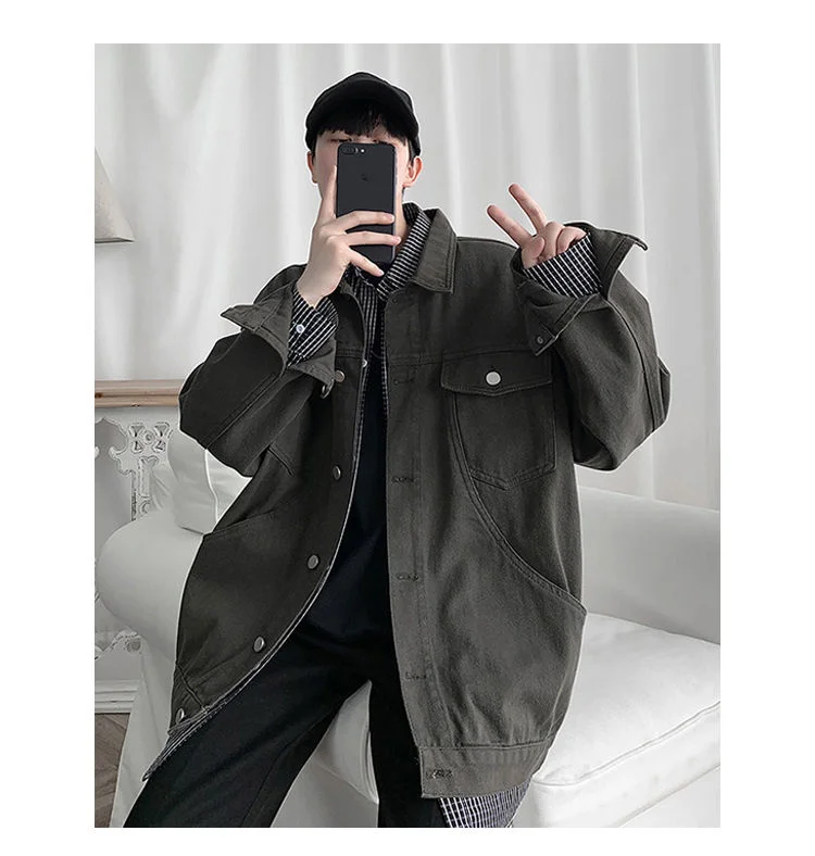 Wiaofellas Japanese Fashion Cowboy Denim Jacket Men Autumn Spring Loose Casual Jeans Coat Streetwear Military Jacket Plus Size Clothes
