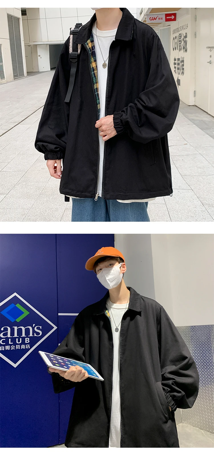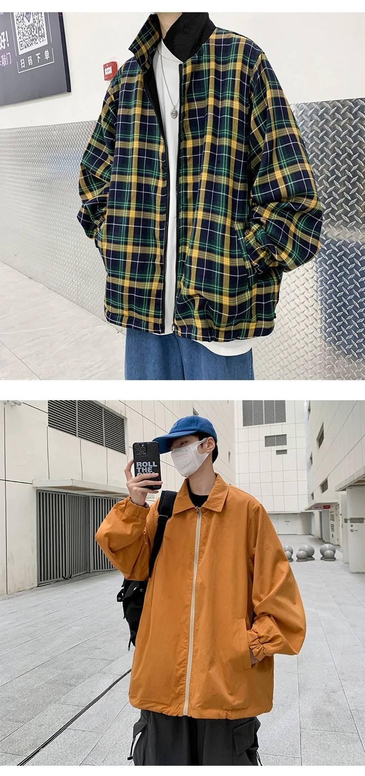 Wiaofellas - Both Sides Wear Men Baseball Jackets Cargo Zipper Male Loose Coat Y2K Korean Fashion Bomber Japanese Styles Students Outerwear