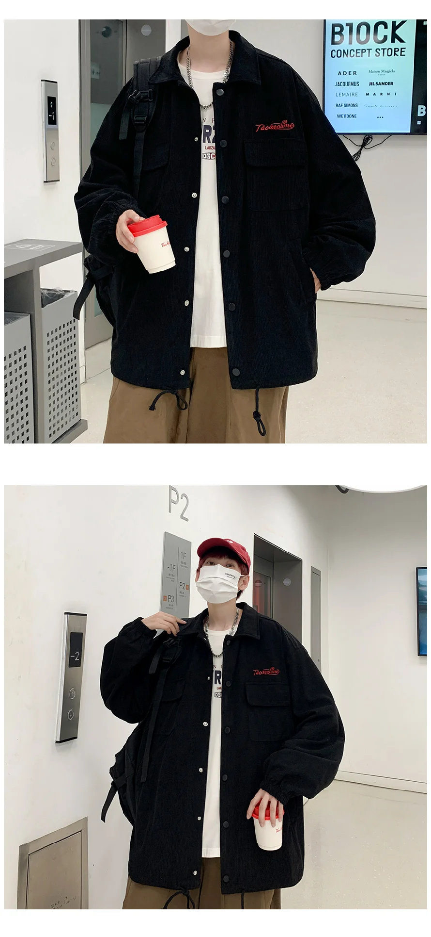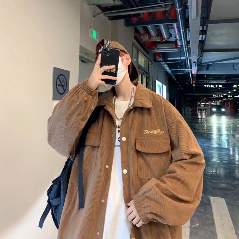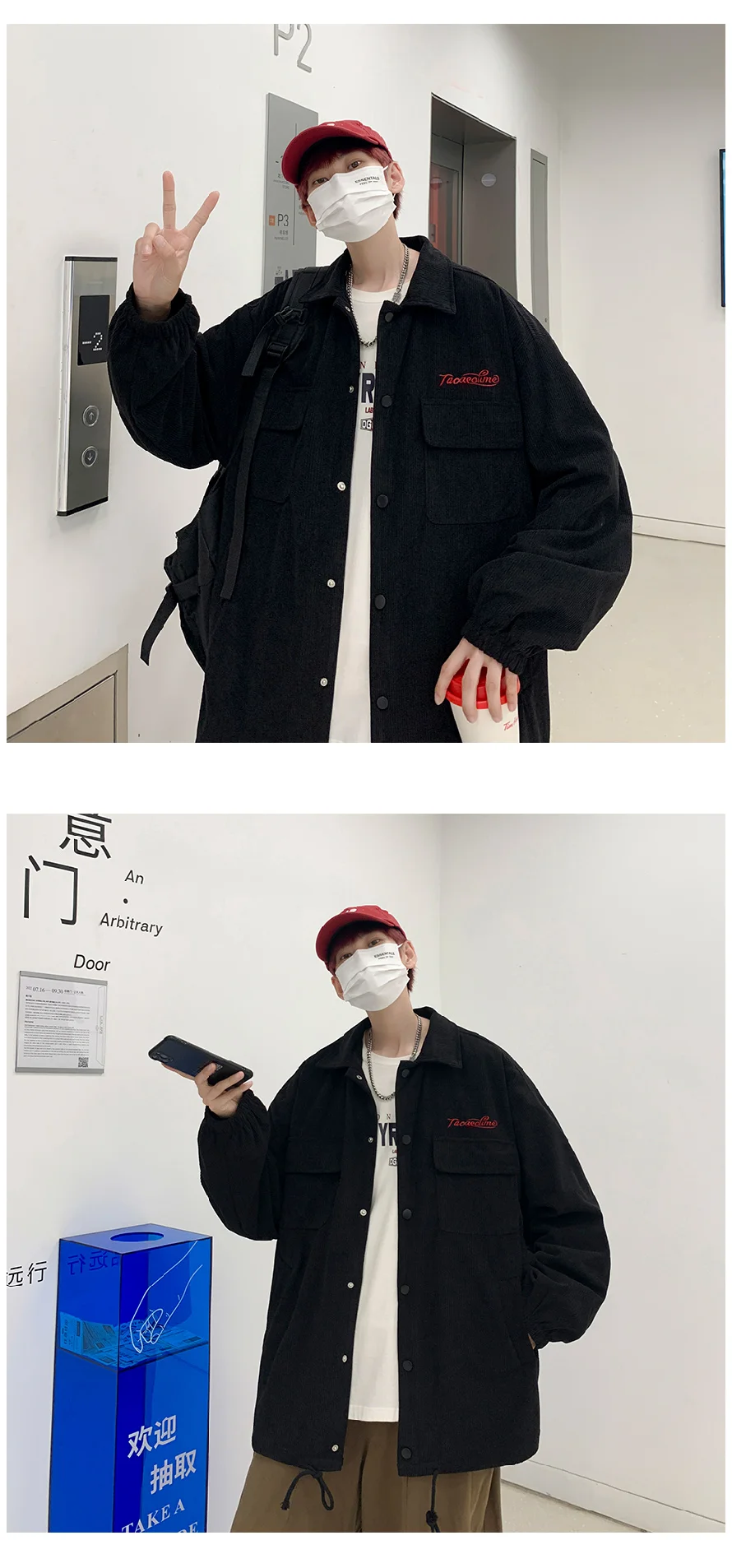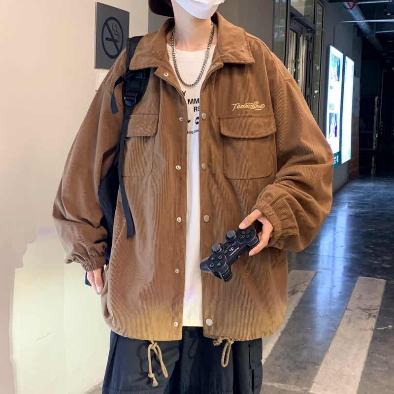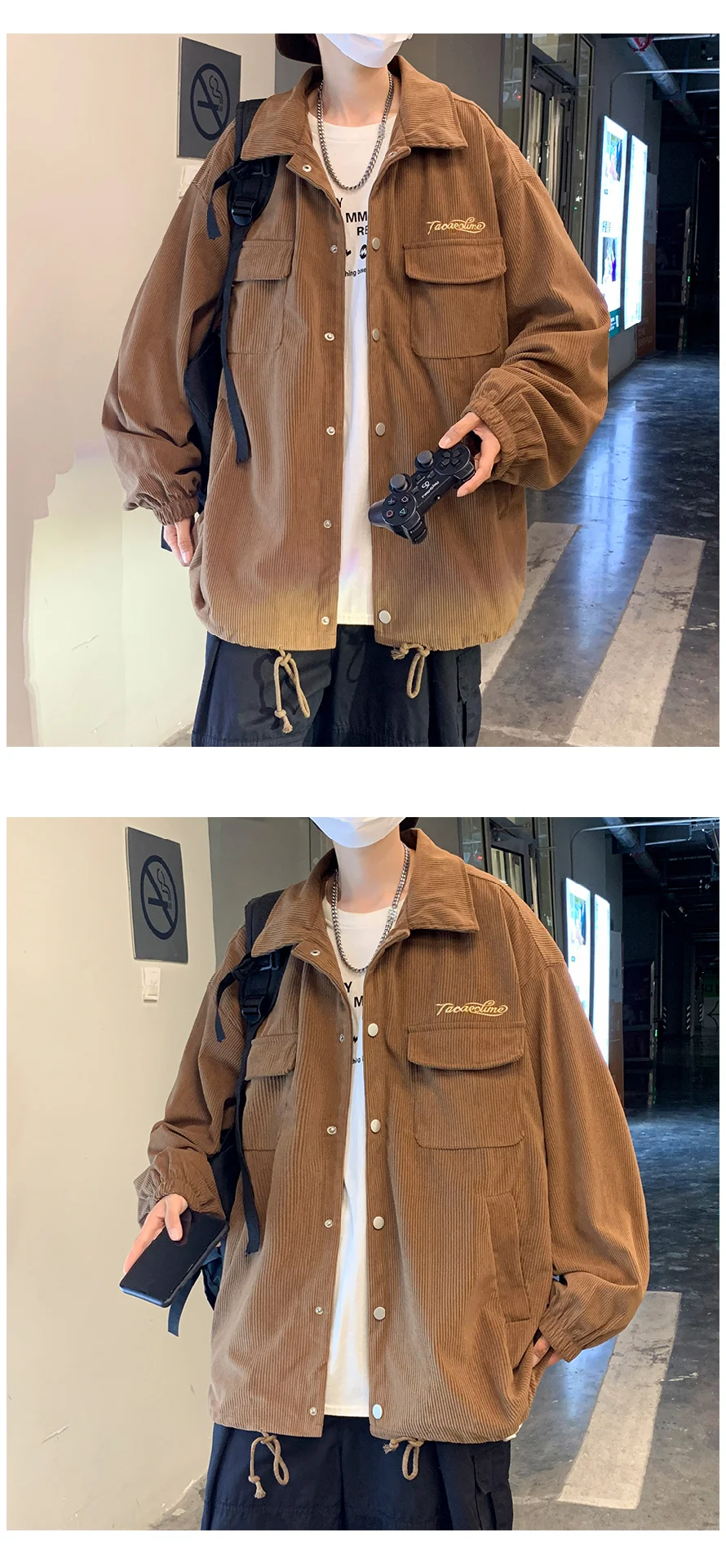 Wiaofellas - Corduroy Autumn Winter Men's Outerwear Jackets Safari Retro Pockets Soft Coat Loose Oversize M-XXXL Tops Casual Chic Streetwear