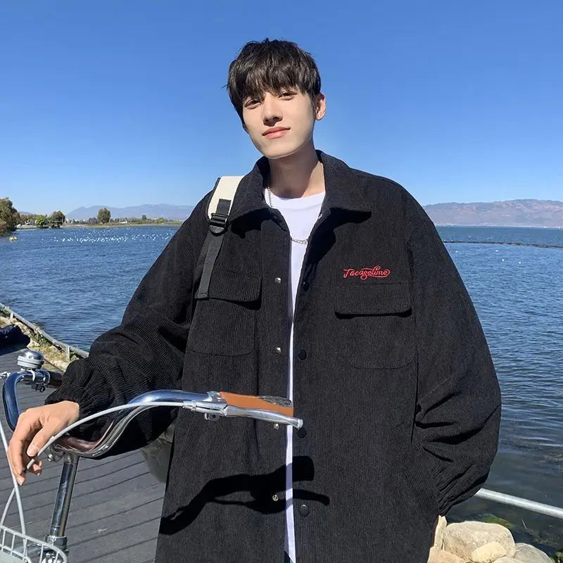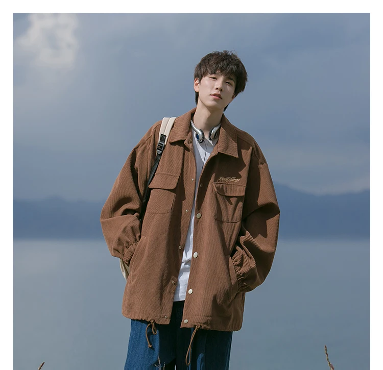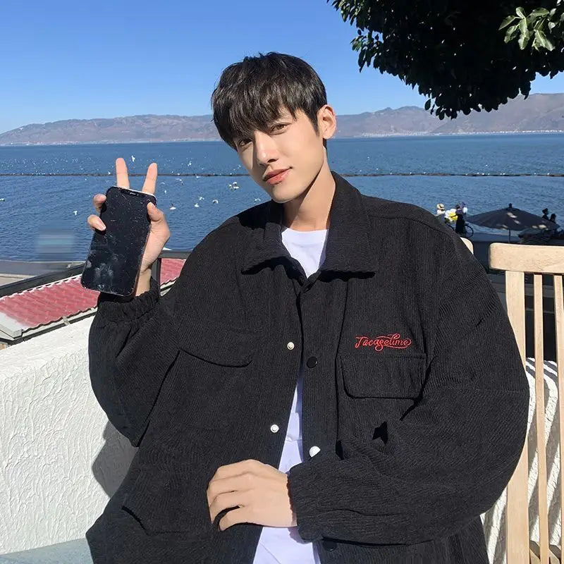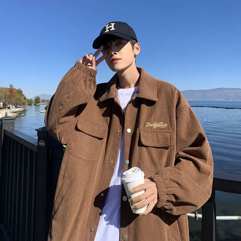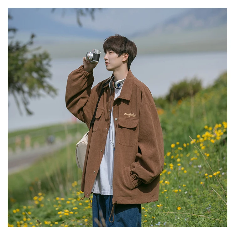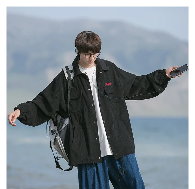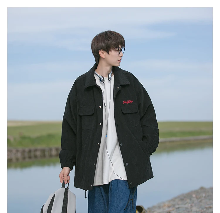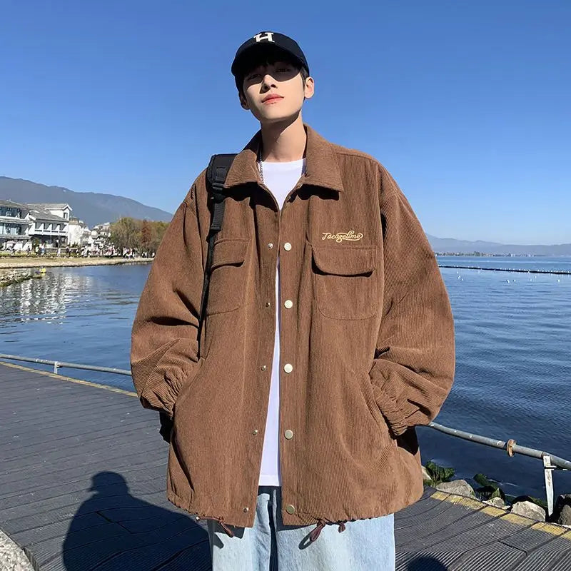 Wiaofellas - Corduroy Autumn Winter Men's Outerwear Jackets Safari Retro Pockets Soft Coat Loose Oversize M-XXXL Tops Casual Chic Streetwear