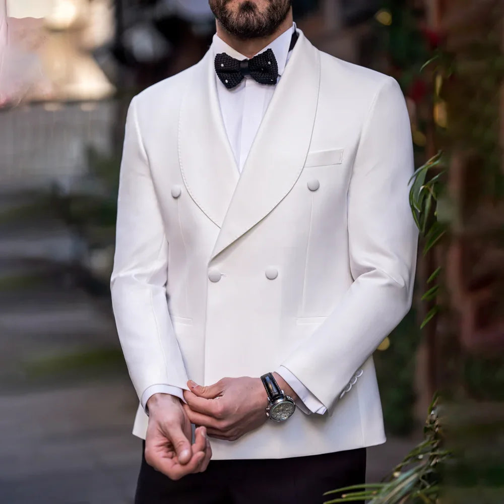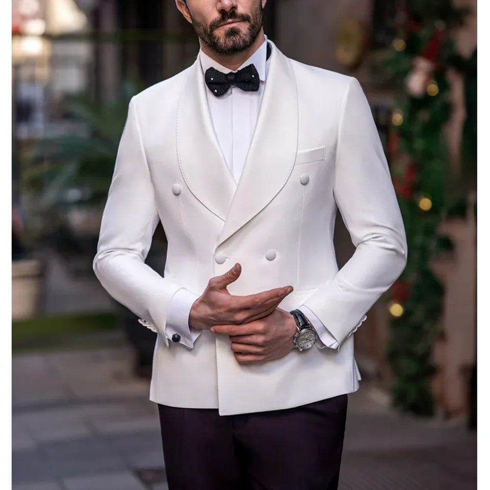 Wiaofellas - Fashion Men Blazer 1 Piece Solid Color Chic Shawl Lapel Double Breasted Coat Slim Prom Party Dinner Wedding Elegant Jacket