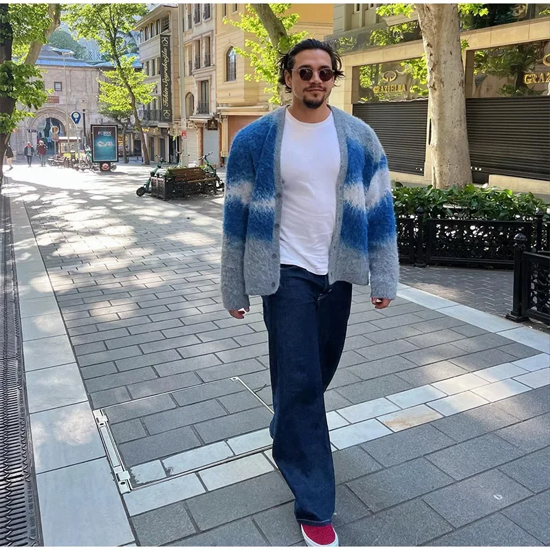 Wiaofellas  -  Fashion Tie Dye Cashmere Knitted Sweater Cardigan Men Casual Long Sleeve Single Breasted Jacket Autumn Warm Woolen Coat
