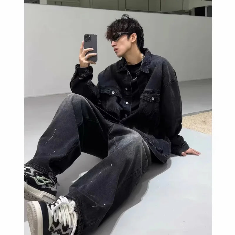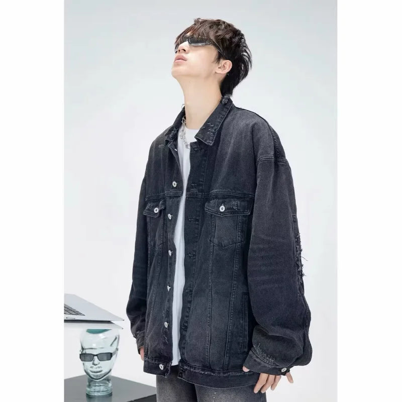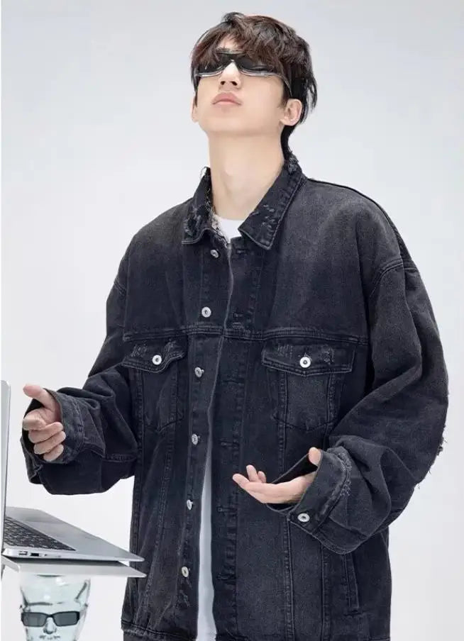 Wiaofellas  -  High Street Washed Denim Jacket Mens Trends New Spring Streetwear Single Breasted Casual Hip Hop Coats Loose Cowboy Outwear