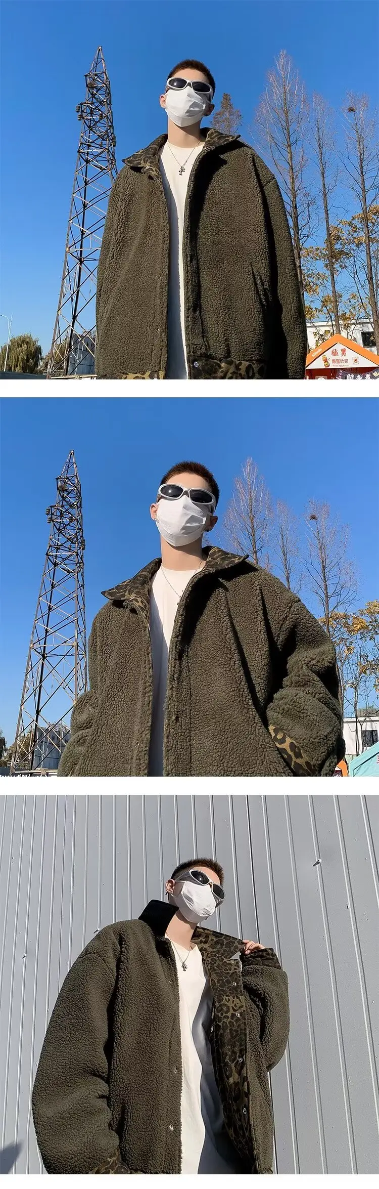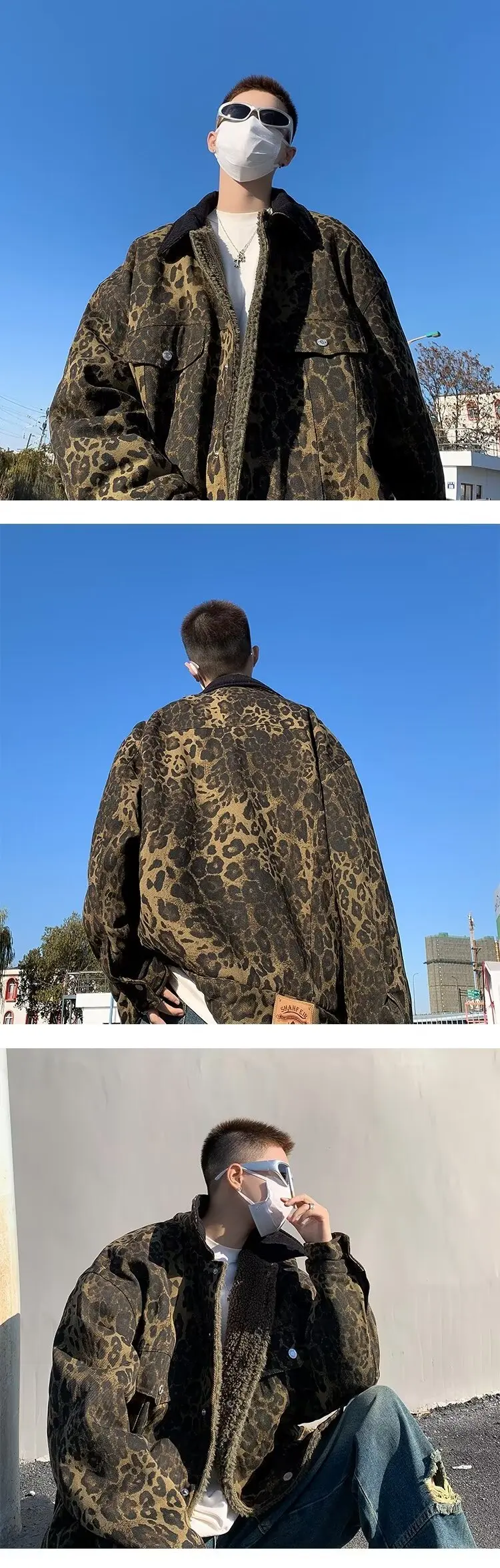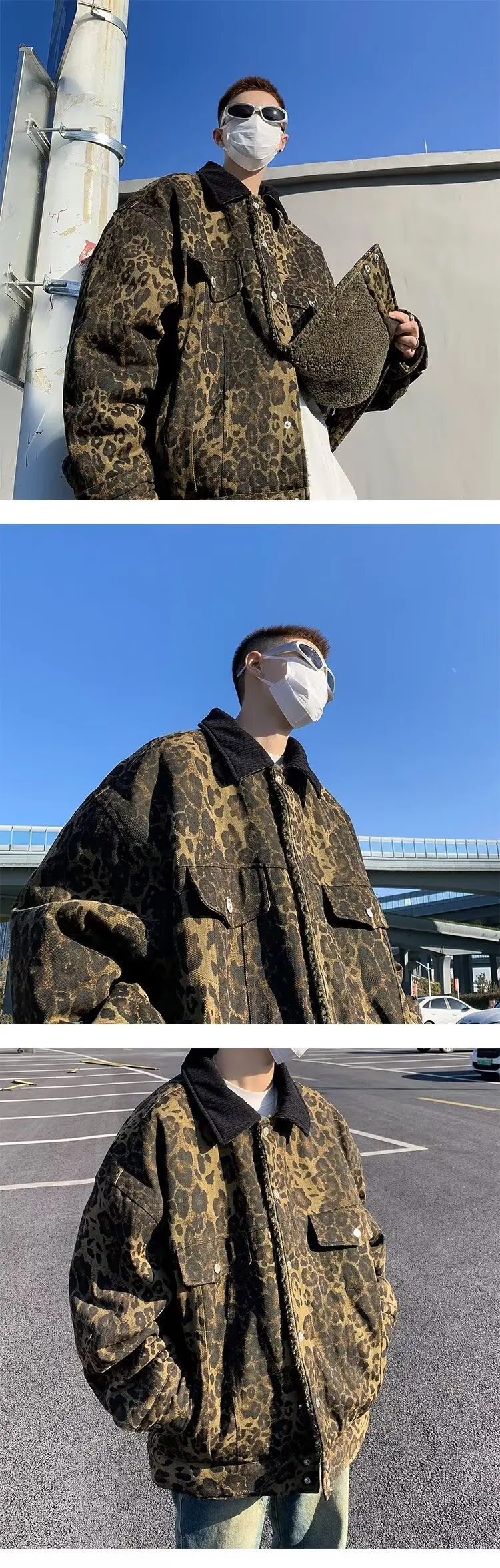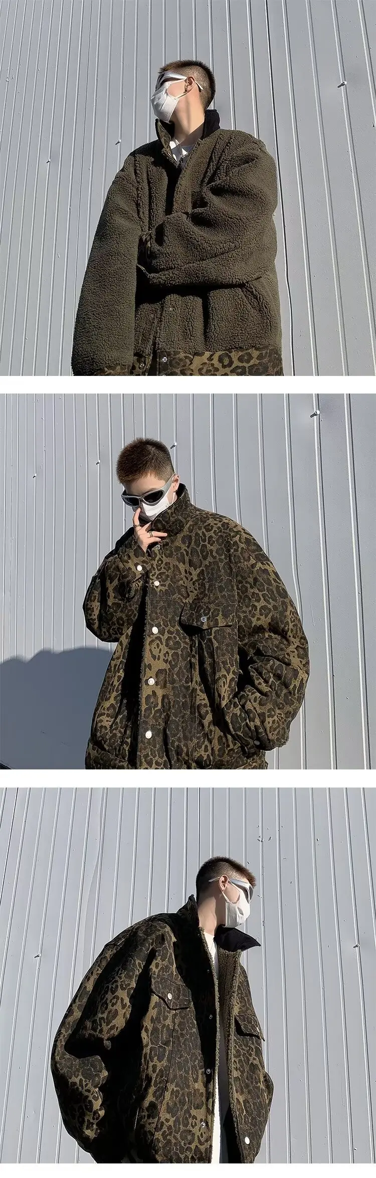 Wiaofellas - Leopard Padded Jacket Men Winter Trendy Double-sided Imitation Sherpa Coat American Animal Print Warm Parkas Hip Hop