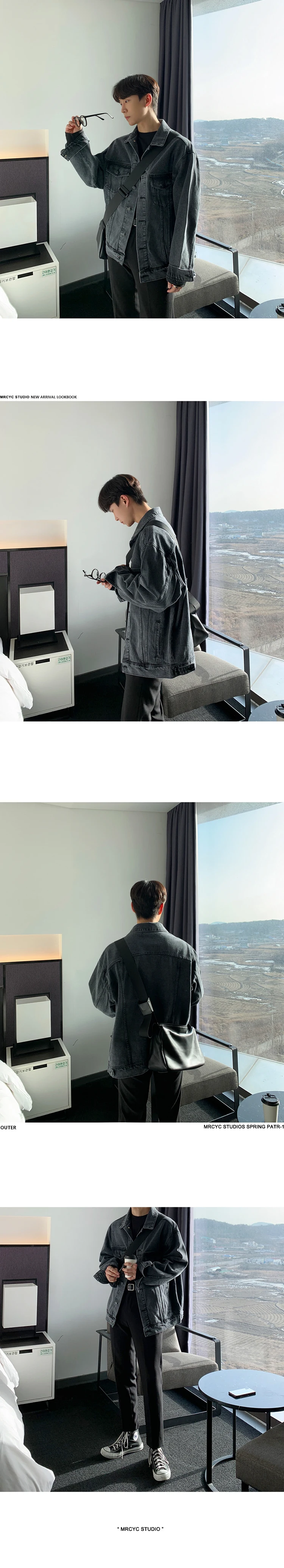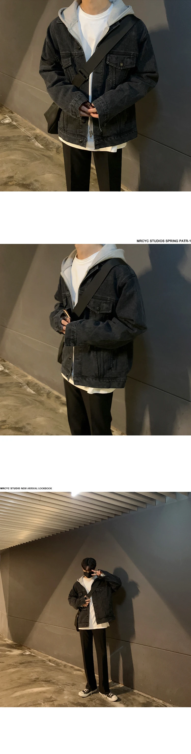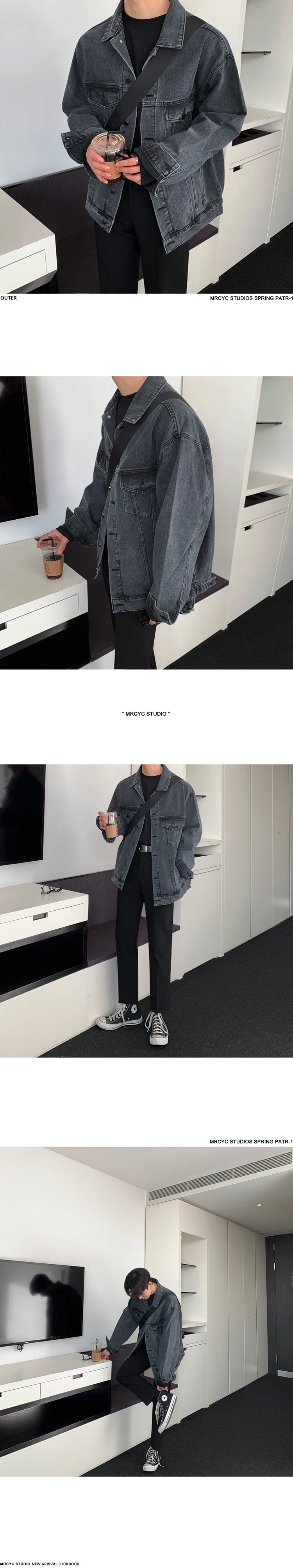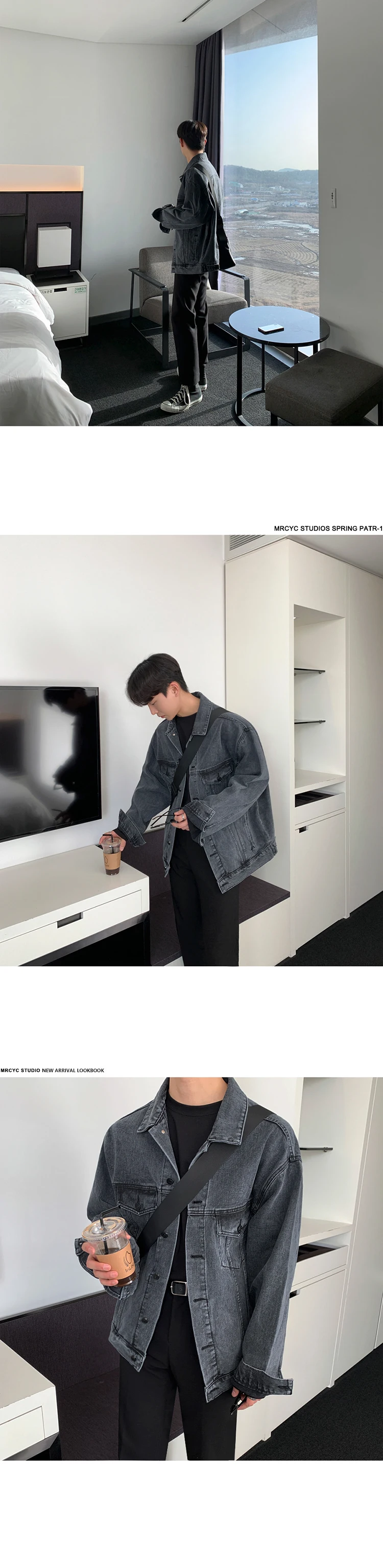 Wiaofellas - Men Spring Autumn New Long Sleeve Denim Jacket Men Solid Color Lapel Casual Coats Male Single Breasted Jeans Outwear C82