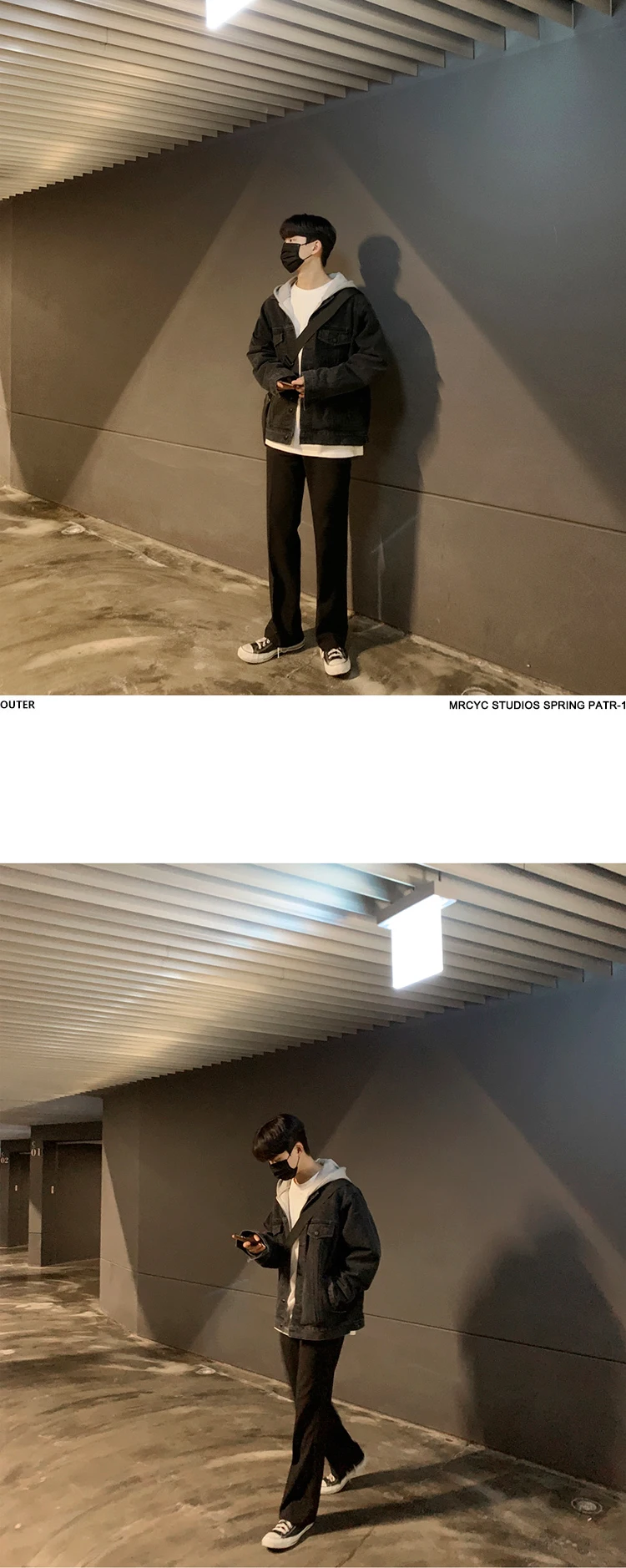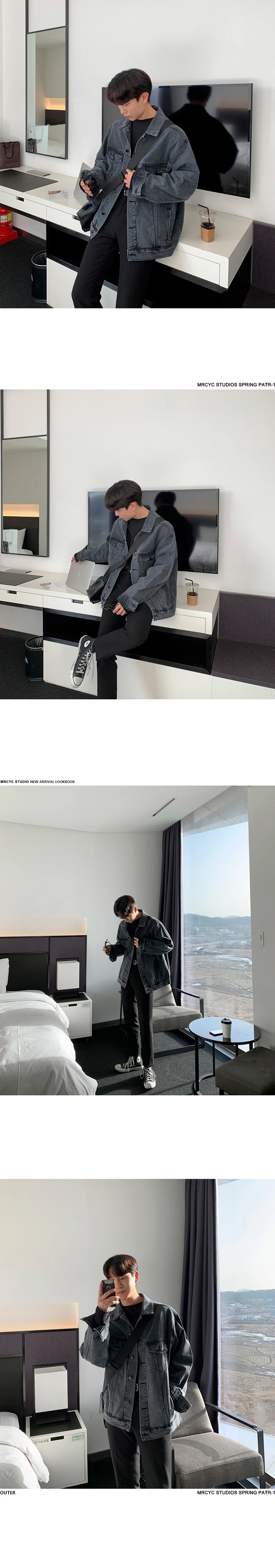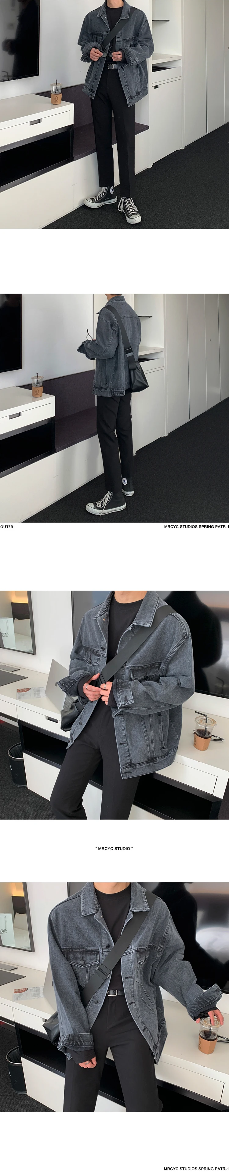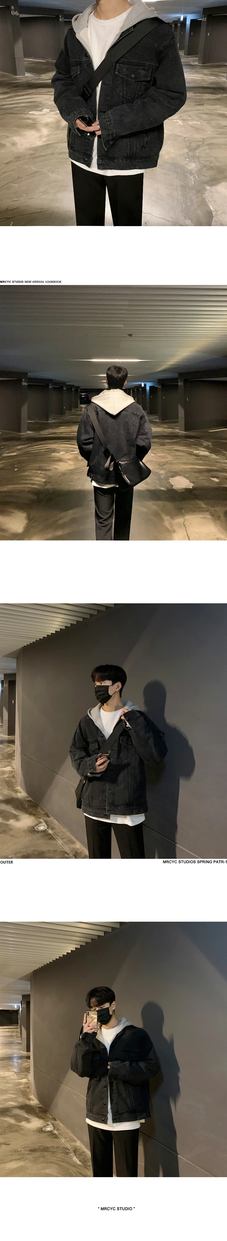 Wiaofellas - Men Spring Autumn New Long Sleeve Denim Jacket Men Solid Color Lapel Casual Coats Male Single Breasted Jeans Outwear C82
