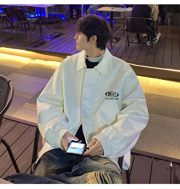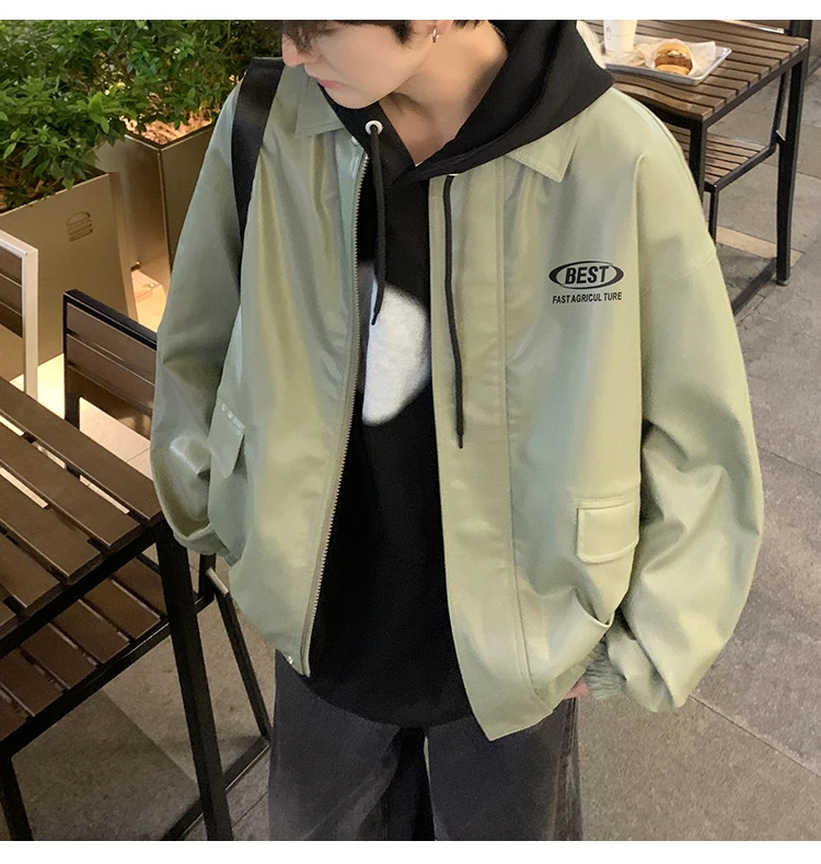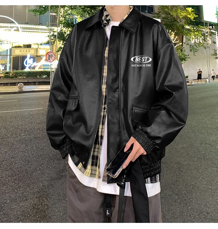 Wiaofellas - Men's New Winter Leather Jacket South Korea Trendy Loose PU Coat Letter Printed Thickening Coat Korean Reviews Many Clothes