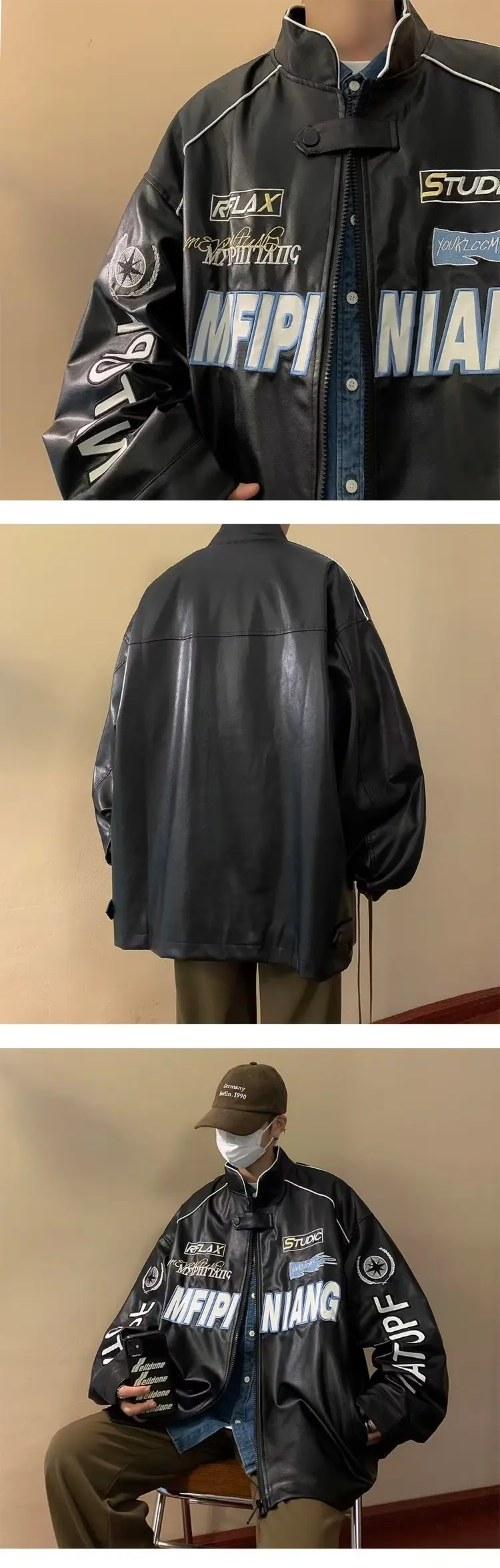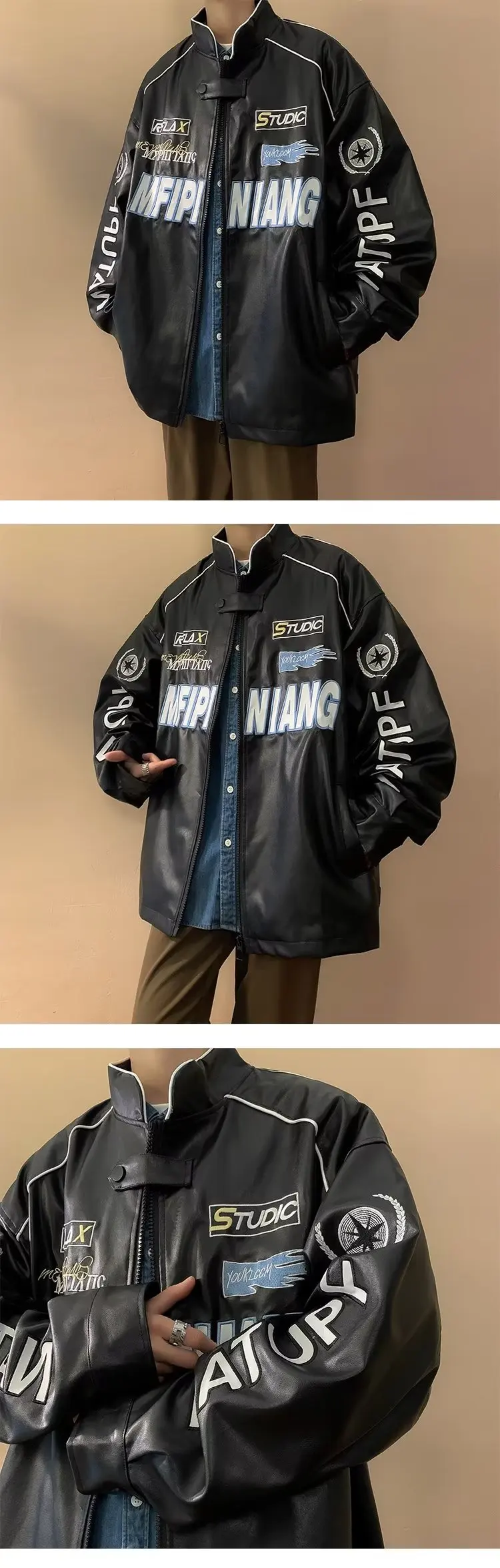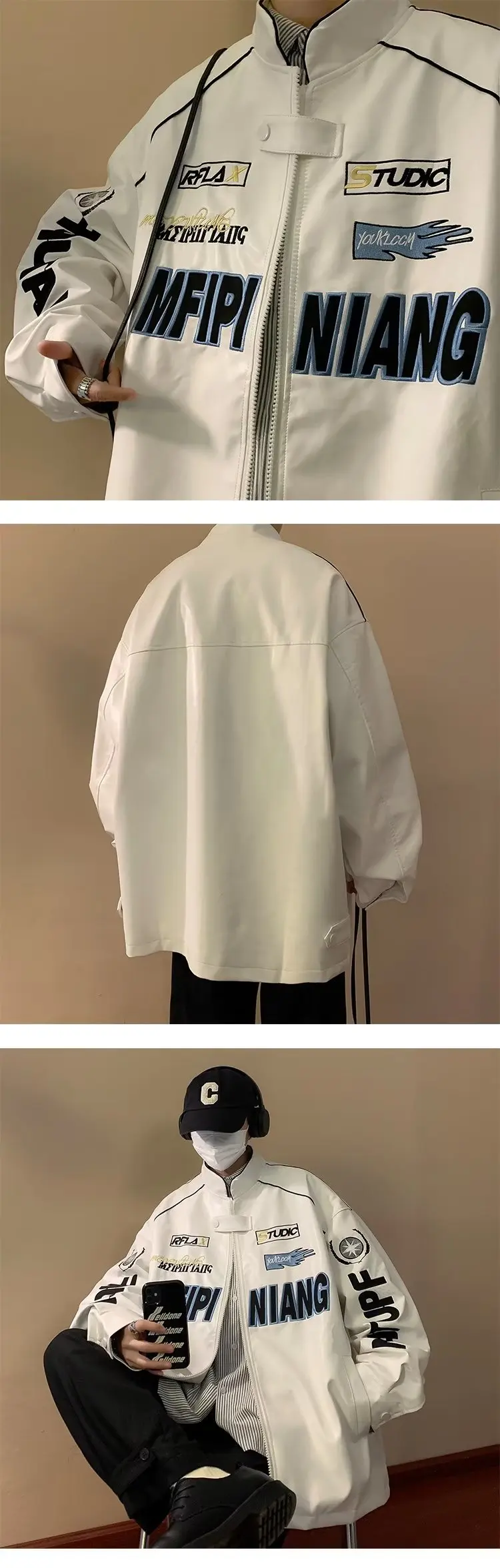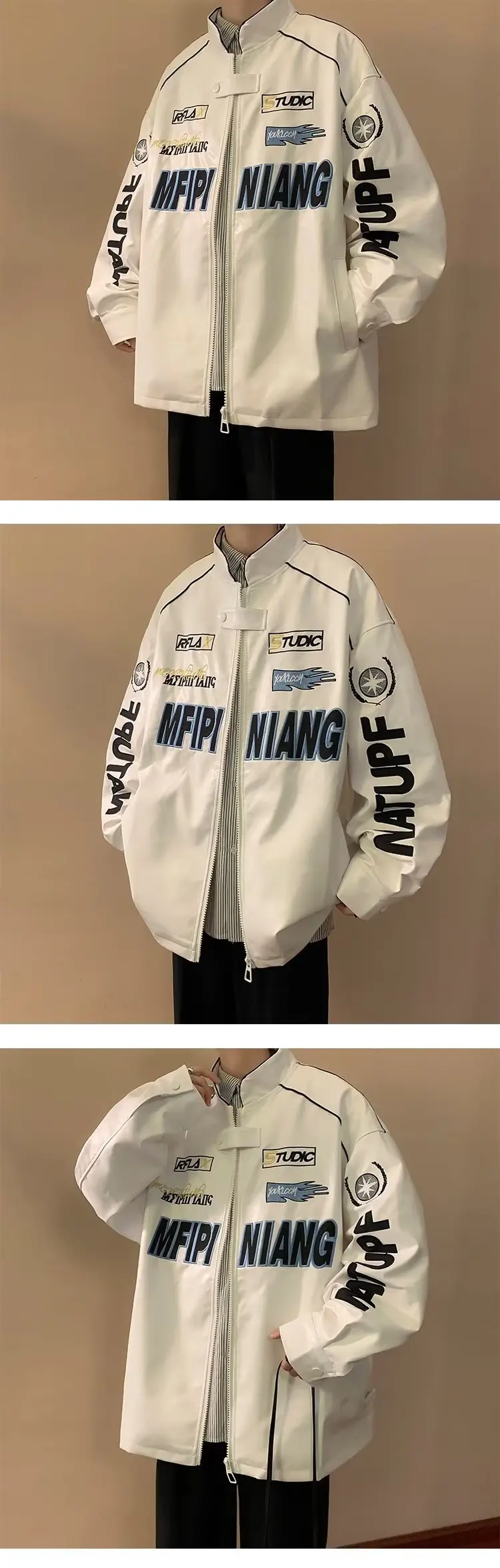 Wiaofellas American High Street Punk Racing Jacket Men Autumn Street Trend Bomber Jackets Male Hiphop Oversized Letter Print Stand Coats