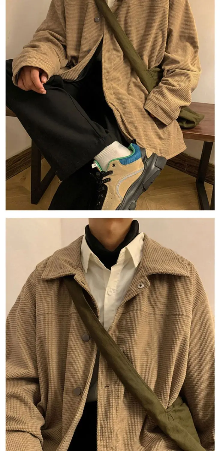 WIAOFELLAS - American Retro Corduroy Jackets Men's High Street Loose Casual Personality Niche Jacket Men Tops Overcoat Male Clothes
