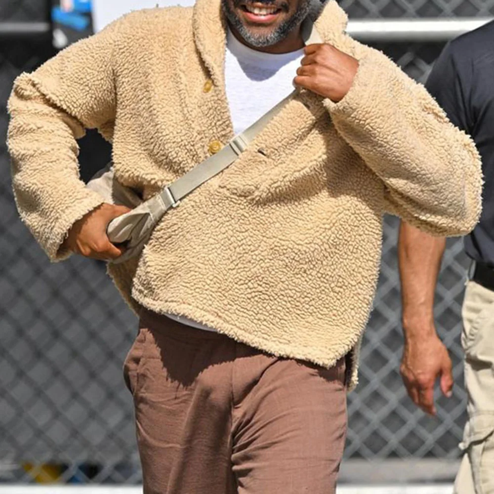 Wiaofellas - Autumn Coat Mens Plush Texture Cozy Soft Warm Tone Button-Up Jacket American Streetwear Urban Casual Fashion Outerwear Winter