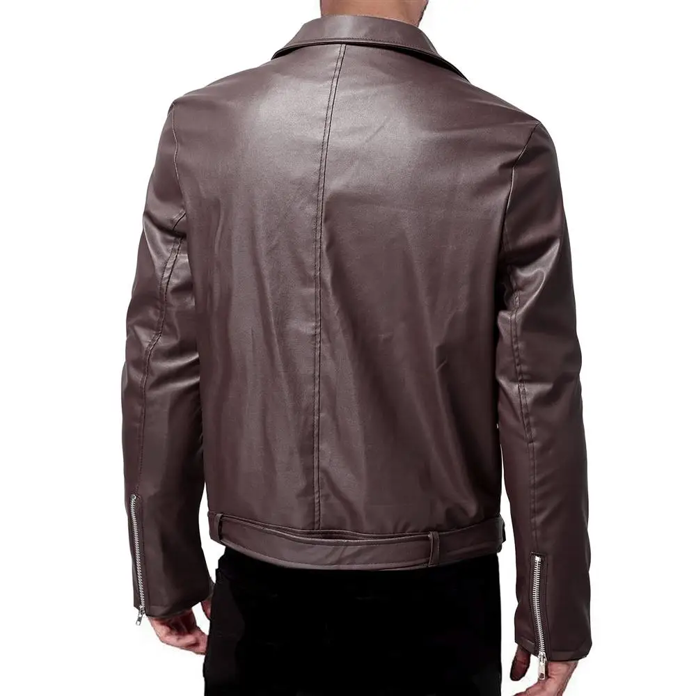 Wiaofellas - Autumn PU Leather Jackets Men Turn Down Collar Motorcycle Jacket Coat Mens Slim Fit Solid Color Moto Biker Casual Outerwear Man