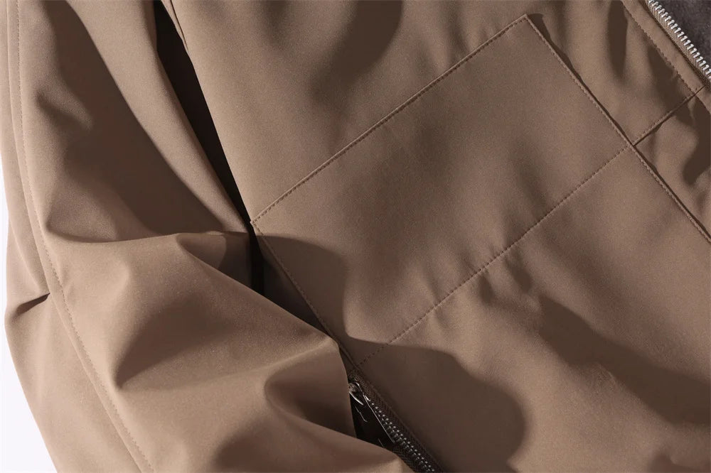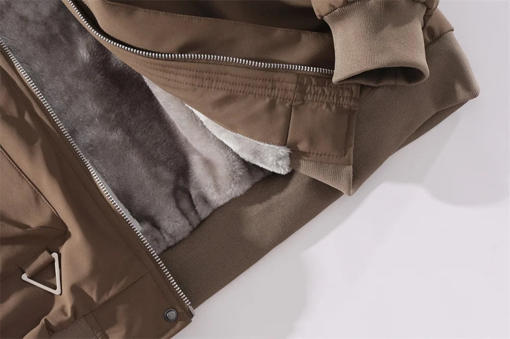 WIAOFELLAS - Business Casual Men's Fleece-Lined Lapel Jacket High-Street Fashion Cold-Weather Pilot Jacket Autumn Winter Men's Outerwear Coat