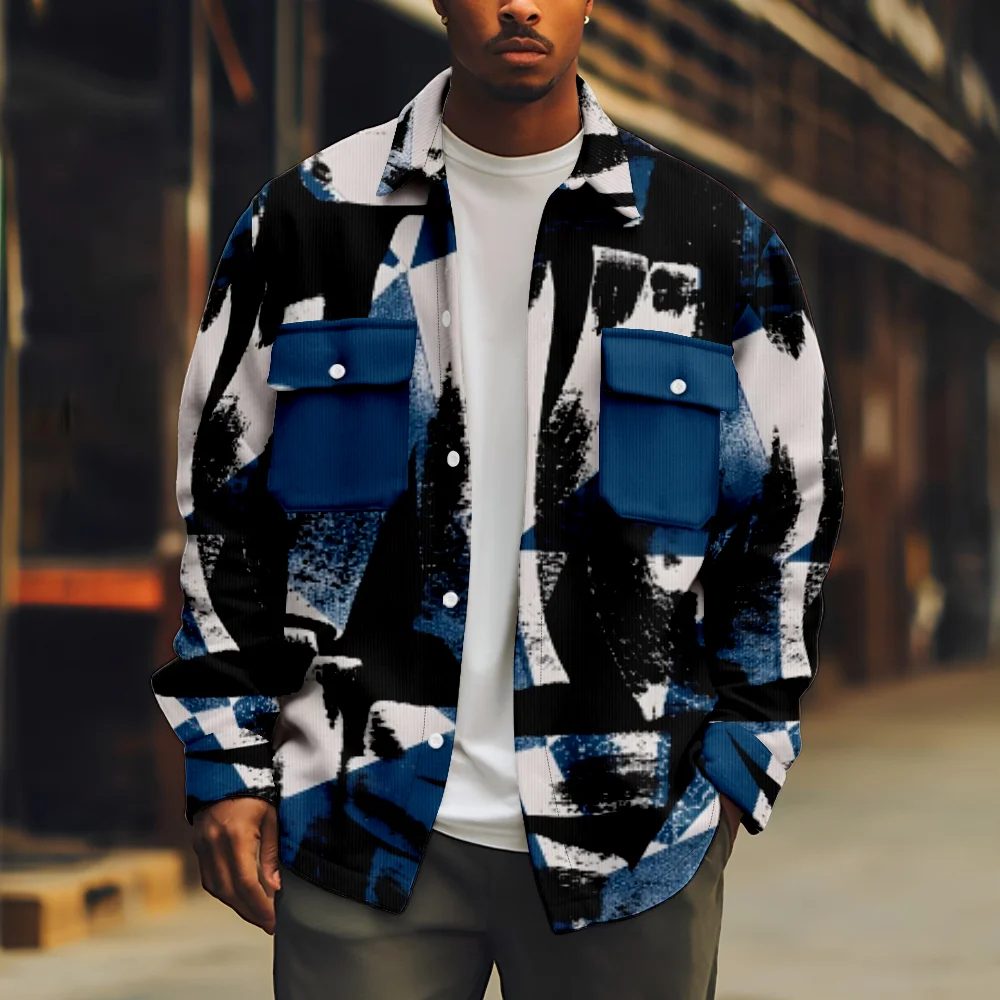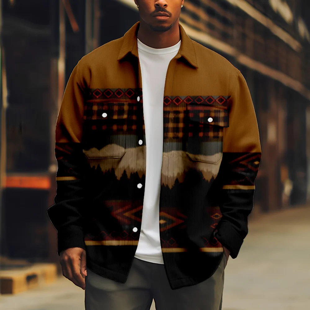 WIAOFELLAS  -  Casual Men's Brown Jacket Art Painting Print Vintage Long Sleeve Fashion Turn-down Collar Button Coat Casual Streetwear
