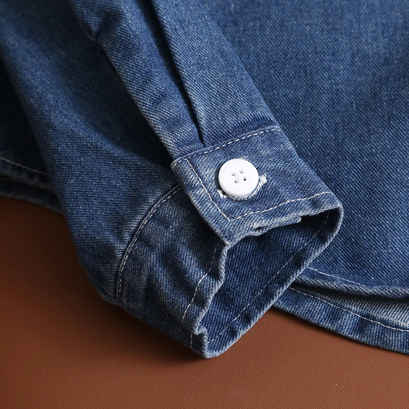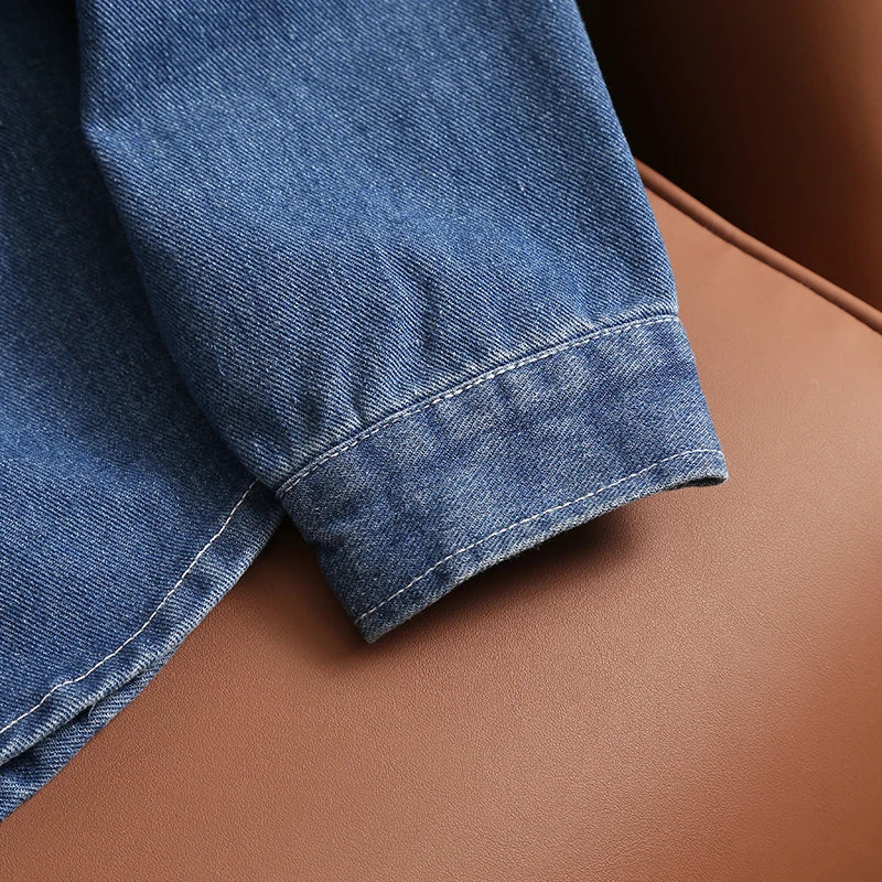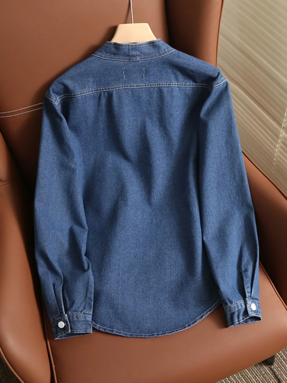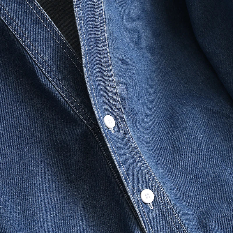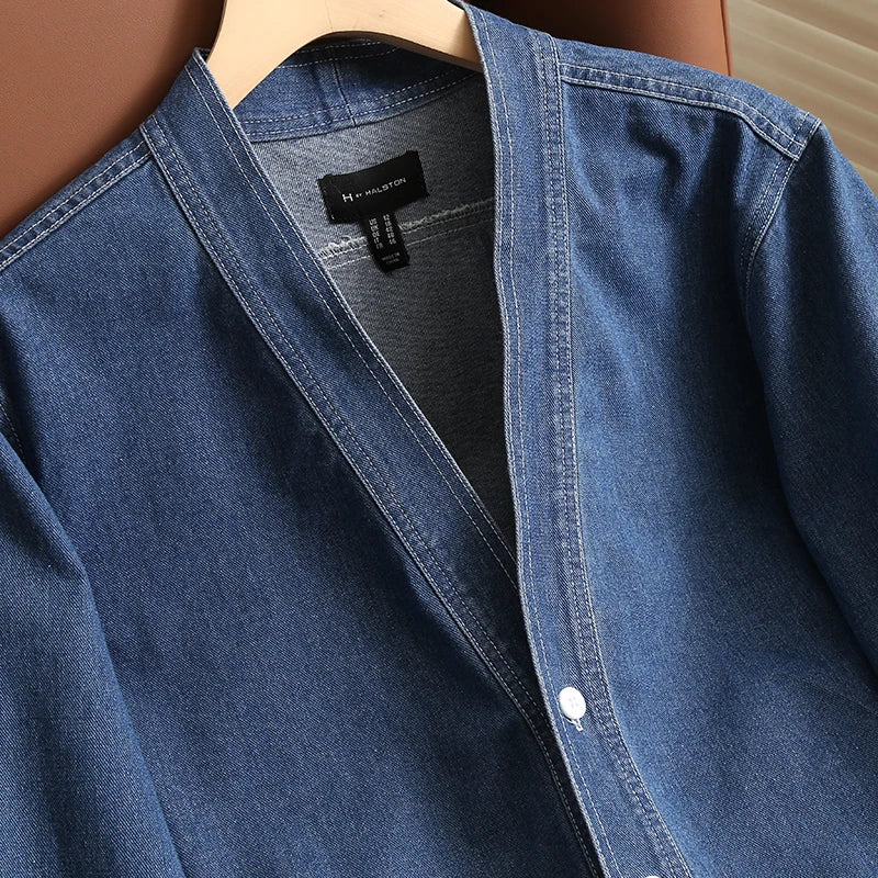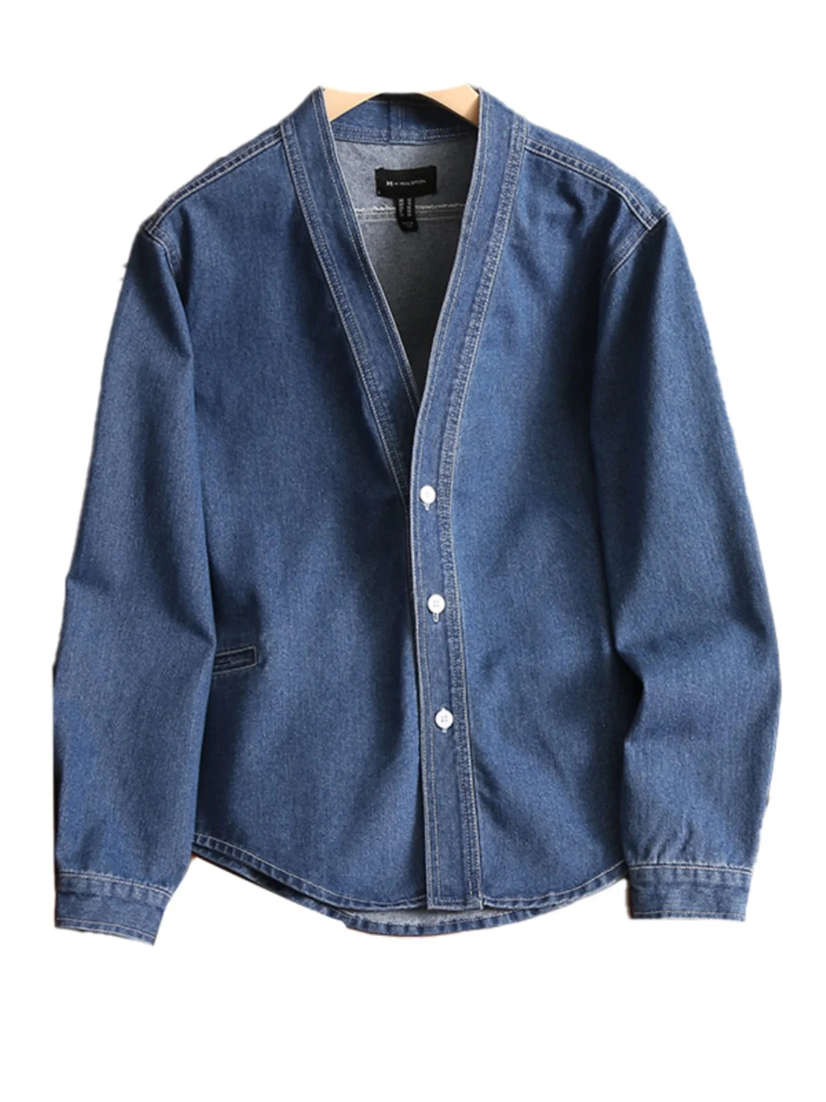 WIAOFELLAS - Classic Denim Cardigan Jacket Monk Robe Spring Men's Washed Taoist Robe V-neck Cardigan Coat Unisex Vintage Button Blue Tops