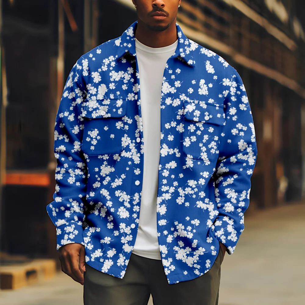 WIAOFELLAS  -  Cool Men's Jacket Black and grey patchwork print Long Sleeve Turn-down Collar Button Coat Casual Streetwear