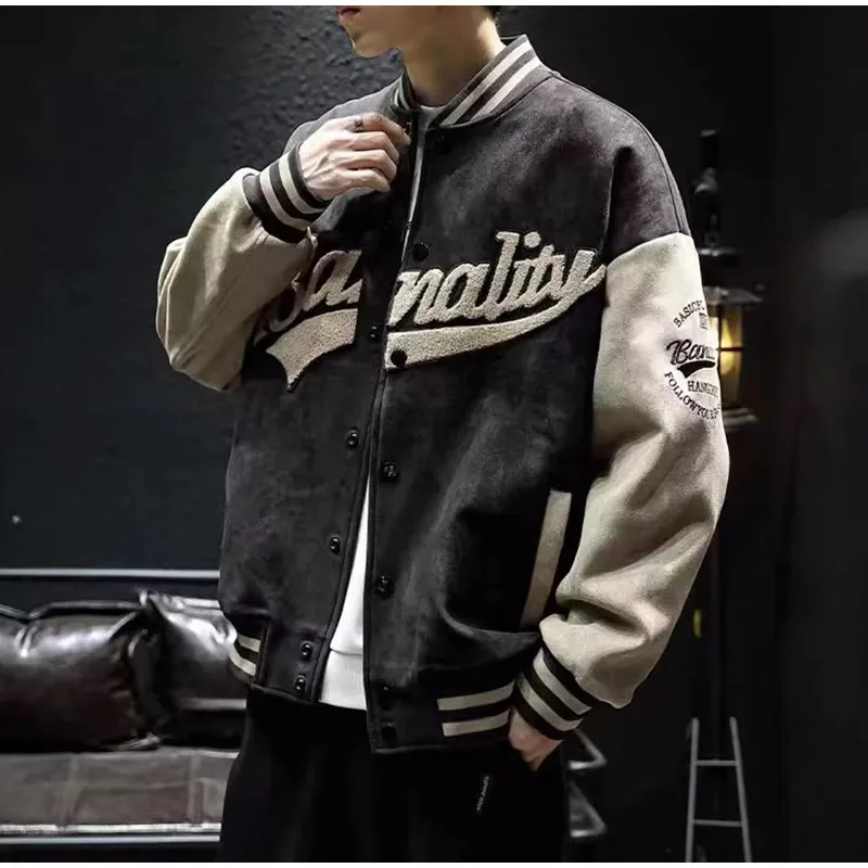 Wiaofellas - Fashion Letter Embroidery Suede Jacket For Male Casual Single Breasted Baseball Bomber Jackets Street Men's Pocket Korean Coat
