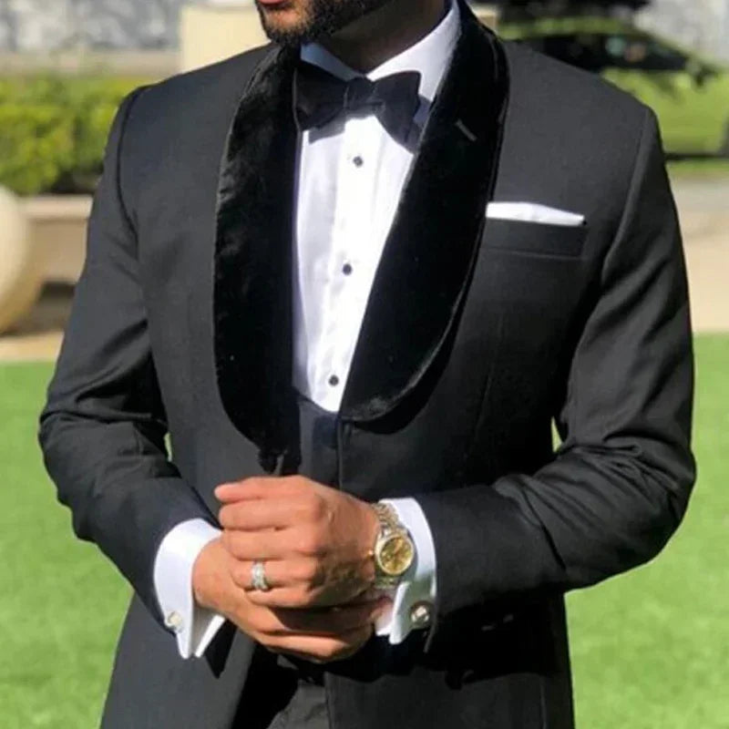 Wiaofellas - Formal Groom Tuxedo For Wedding 3 Pieces Custom Men Suits Slim Fit Velvet Shawl Lapel Male Fashion Jacket Waistcoat Pants