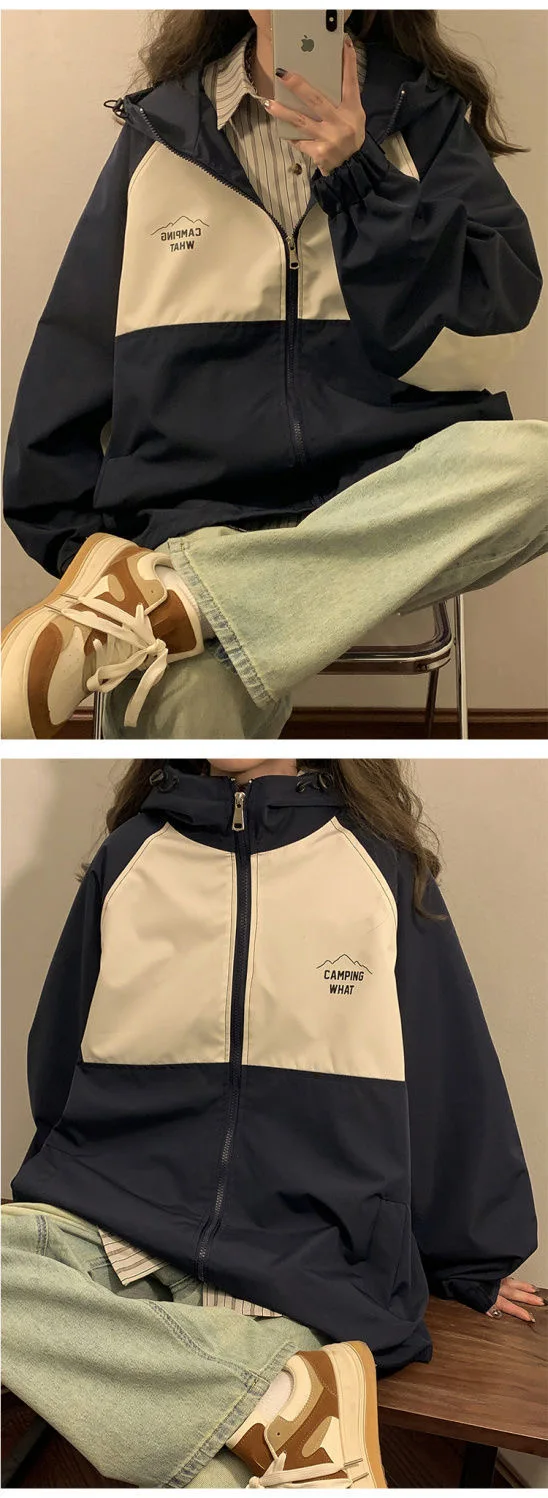 WIAOFELLAS - Harajuku Patchwork Jackets Women Cargo Jacket Y2K Spring Autumn Casual Loose Outerwear Long Sleeve Coats Teens Female Top