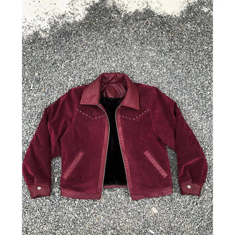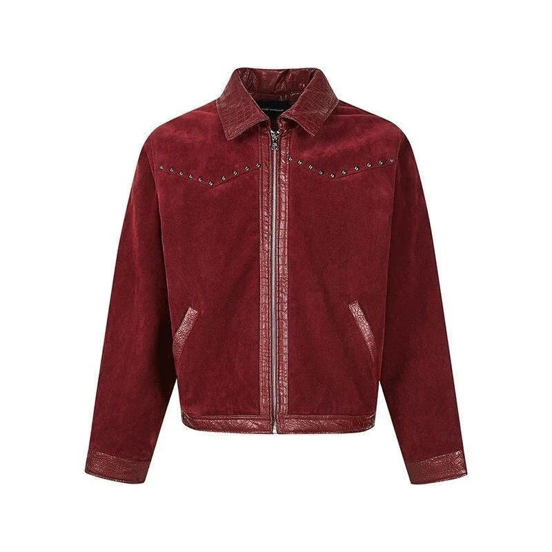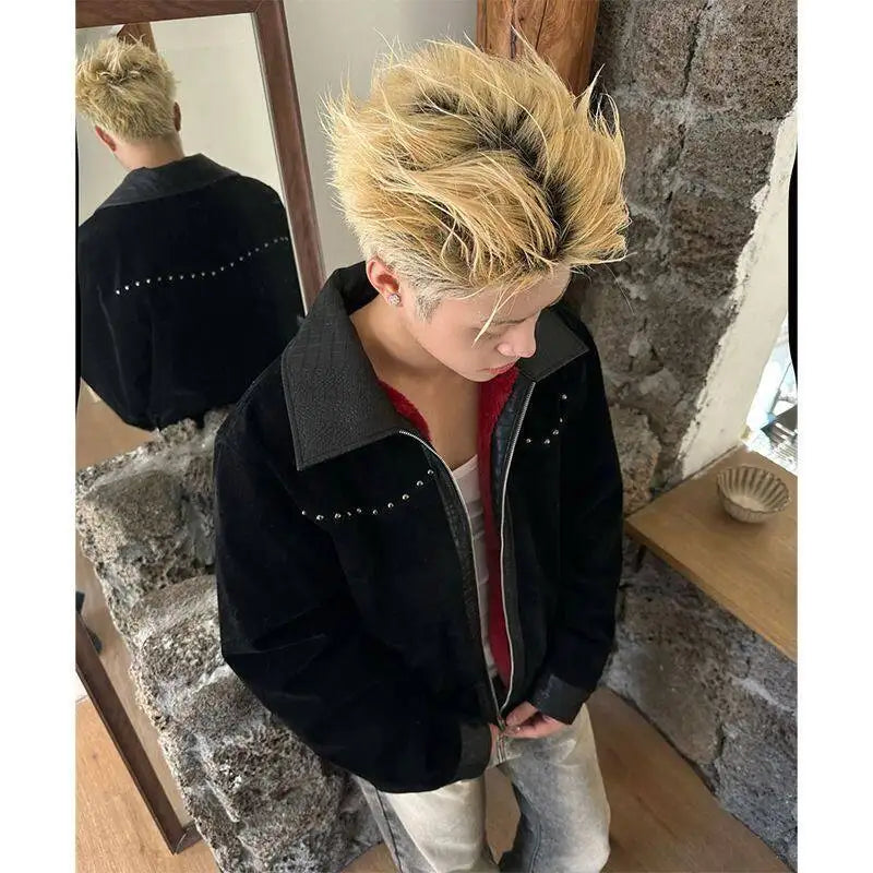 WIAOFELLAS - High Street Men's Coats Turn-down Collar PU Leather Patchwork Metal Rivets Zipper Solid Color Casual Male Jackets