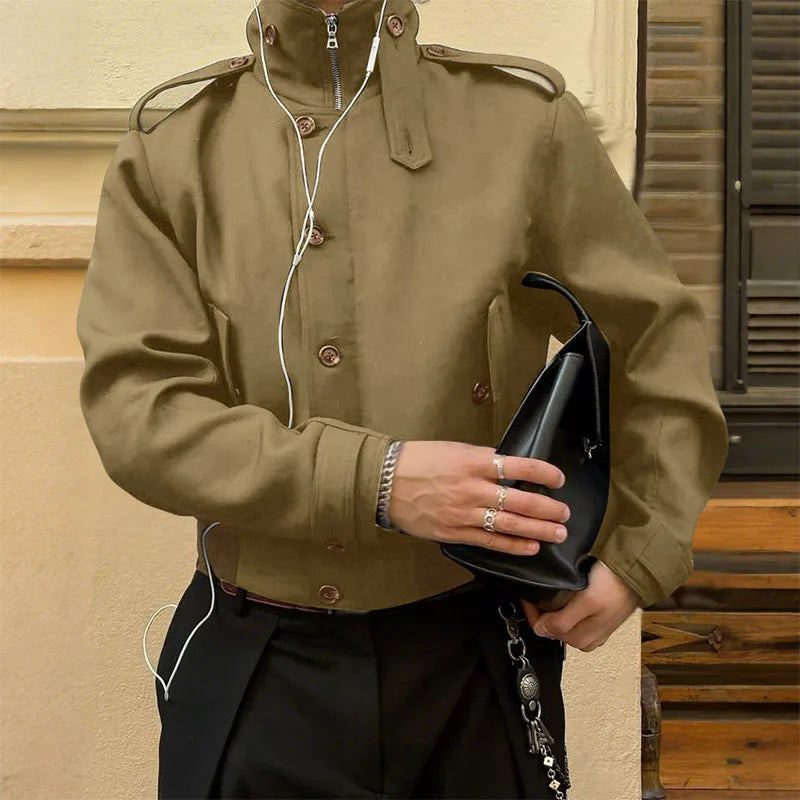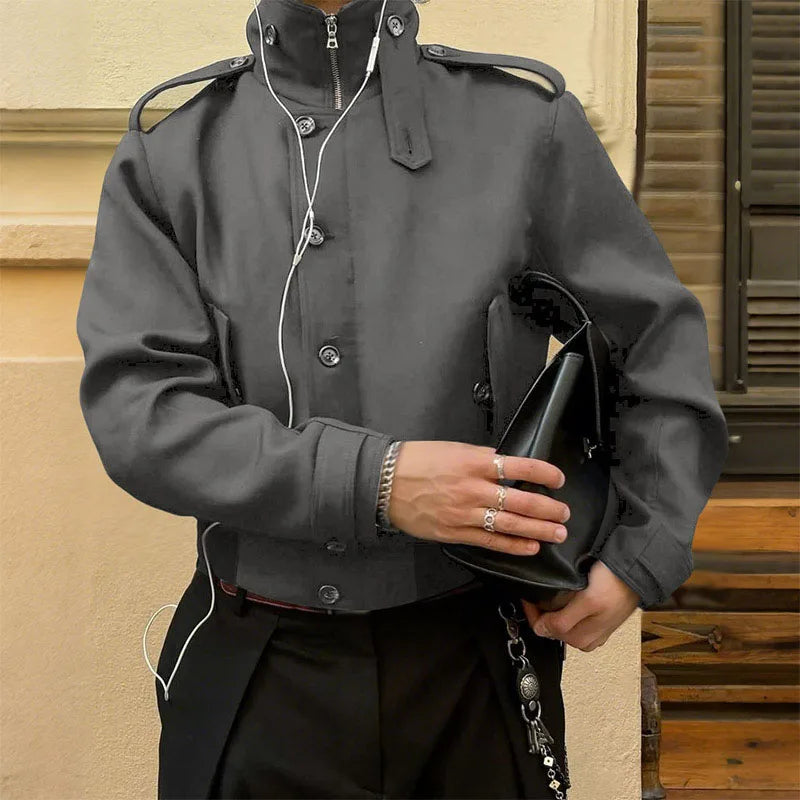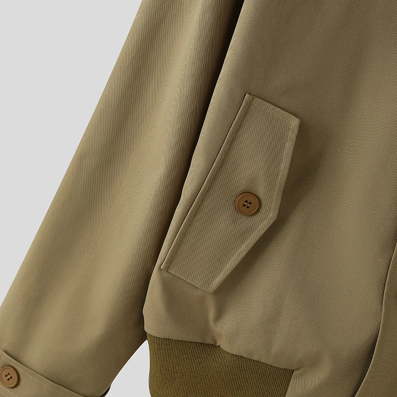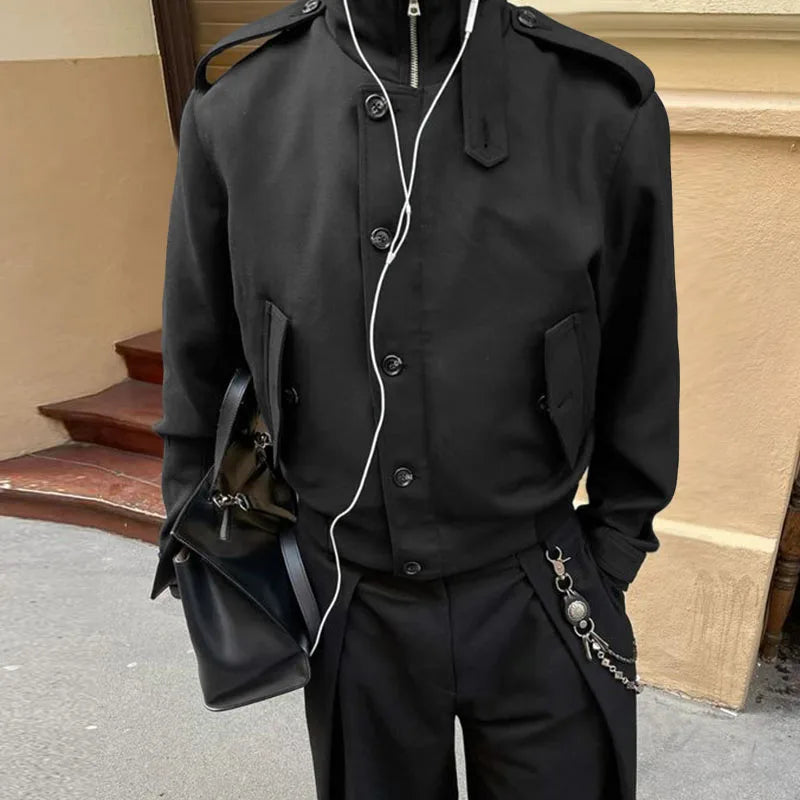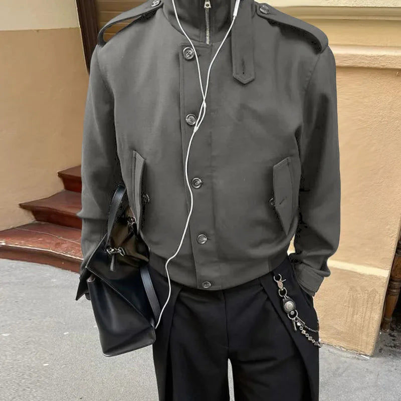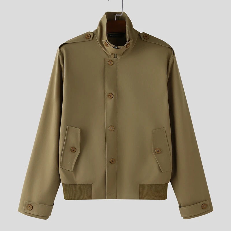 WIAOFELLAS - Men Jackets Solid Color Stand Collar Long Sleeve Zipper Button Male Coats Streetwear Fashion Casual Jackets Outerwear