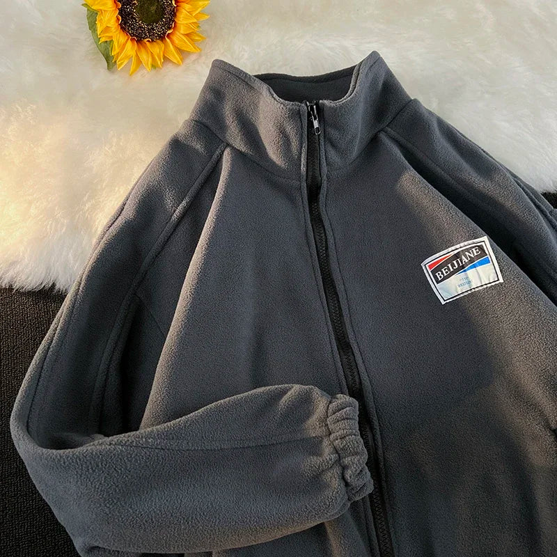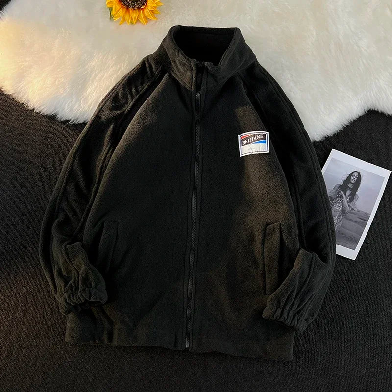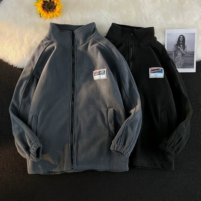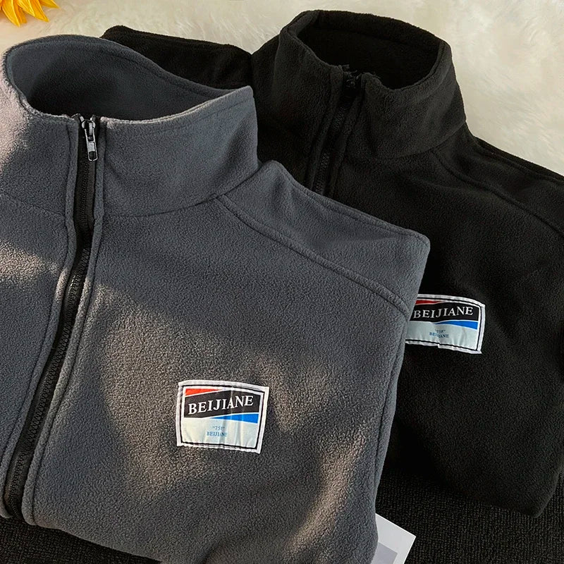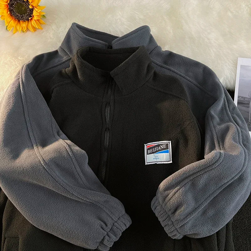 WIAOFELLAS - Men Thicker Jackets Autumn Winter Stand Collar All-match Solid Fashion Patchwork Zipper Warm Streetwear Long Sleeve Casual Coats