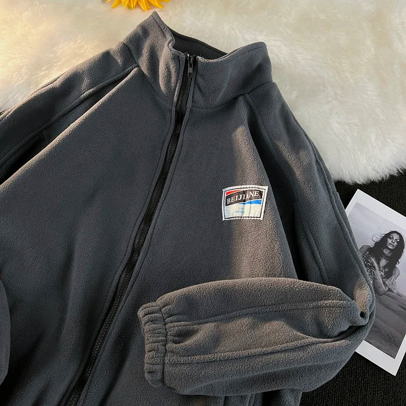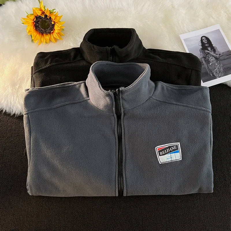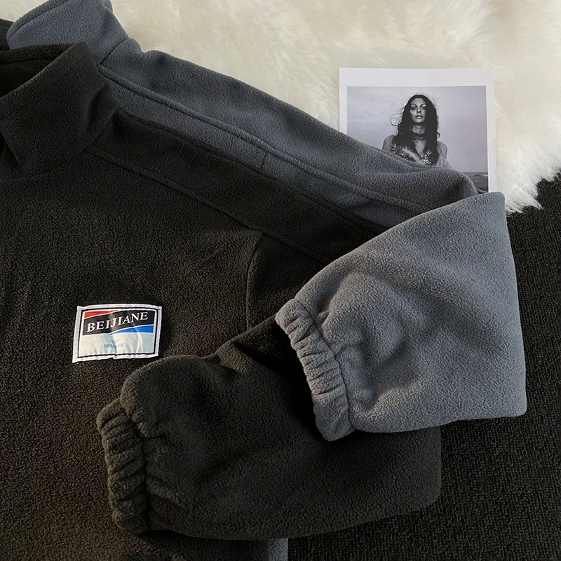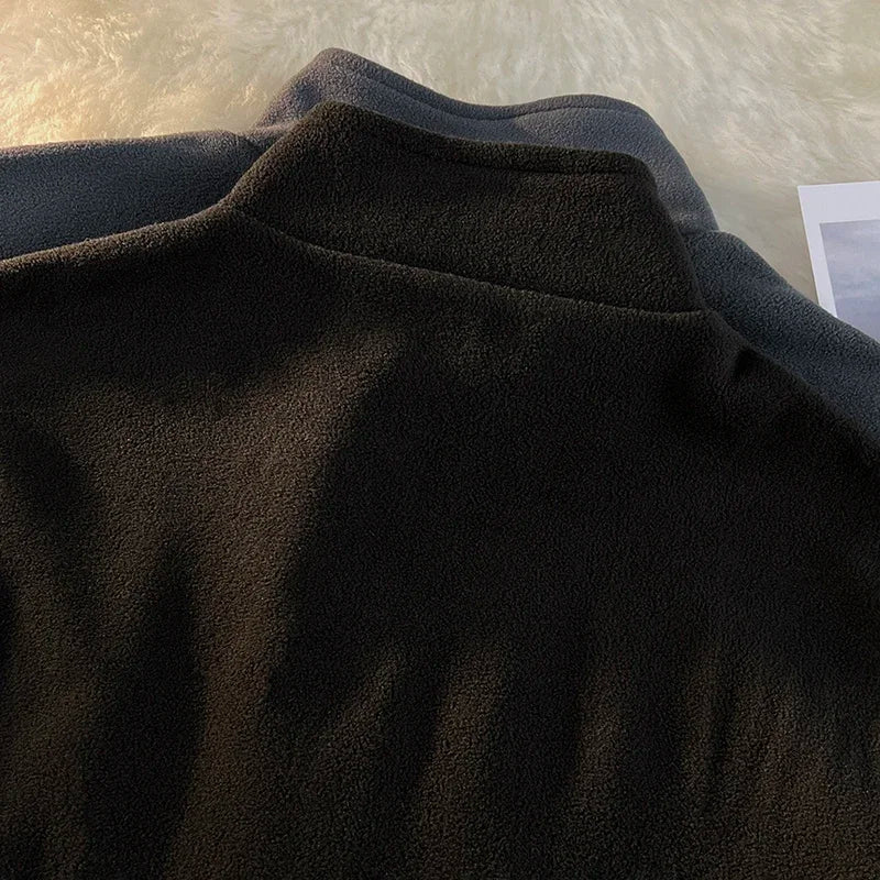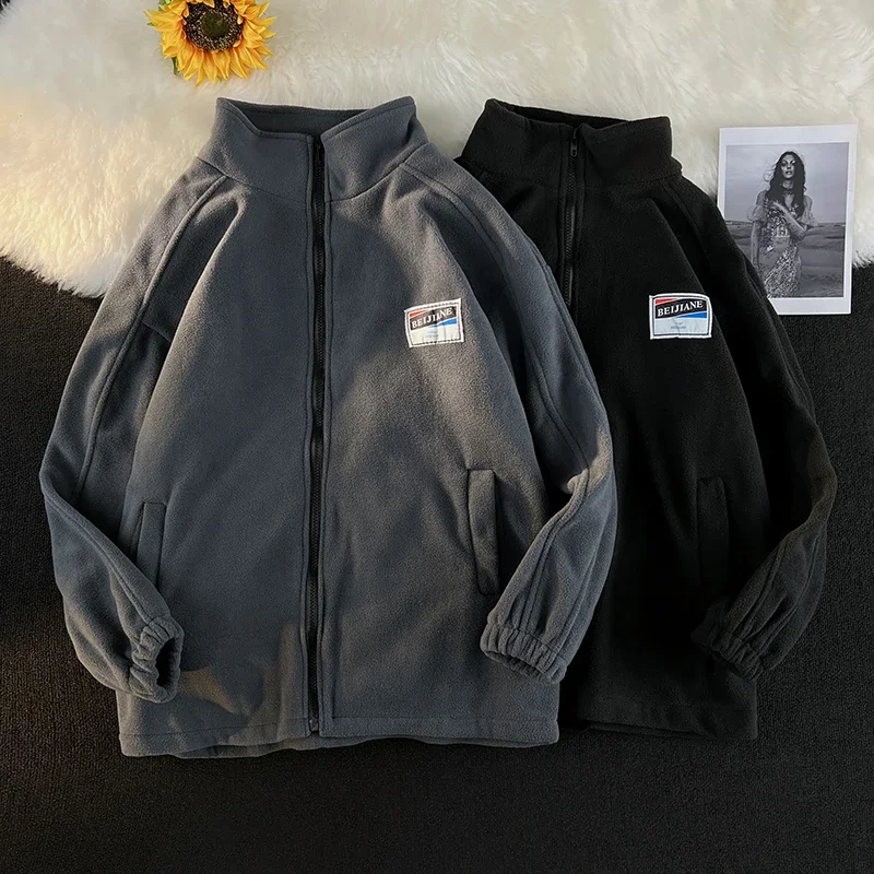 WIAOFELLAS - Men Thicker Jackets Autumn Winter Stand Collar All-match Solid Fashion Patchwork Zipper Warm Streetwear Long Sleeve Casual Coats