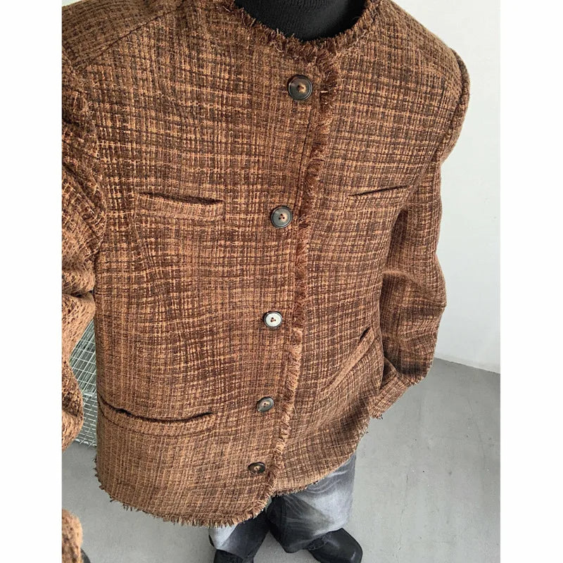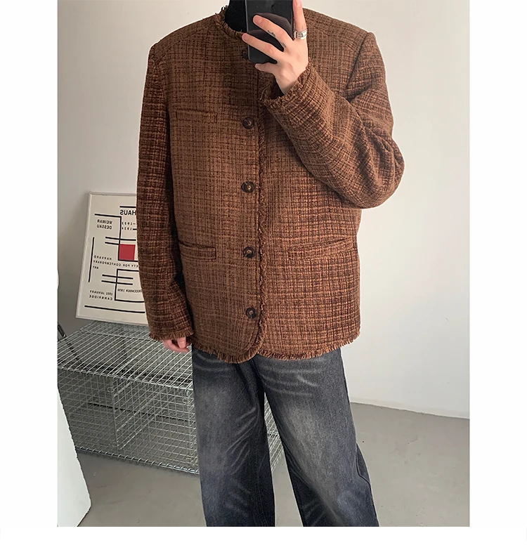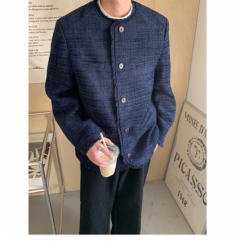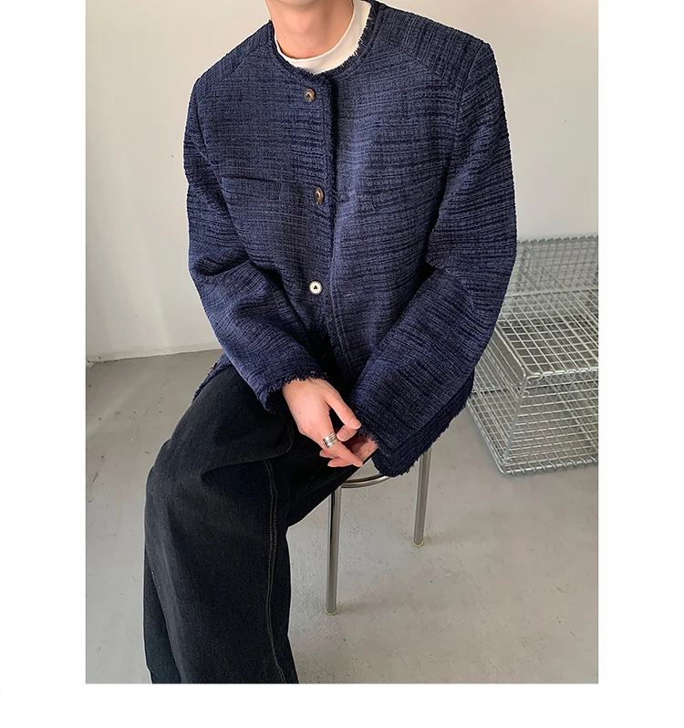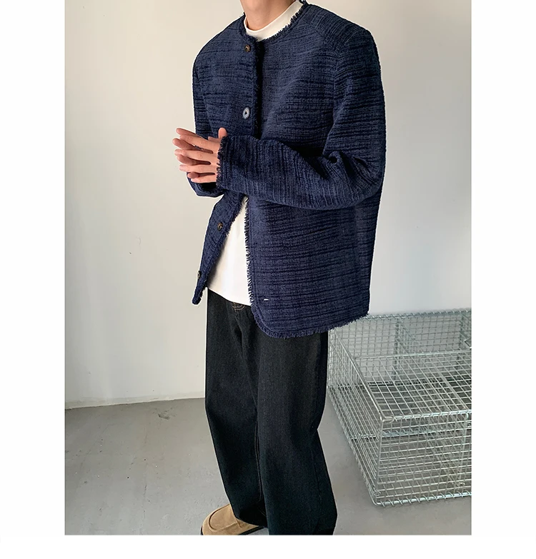 WIAOFELLAS - Men's Jackets Round Collar Niche Design Single Breasted Personalized Solid Color Loose Male Coats Korean 2025 Spring