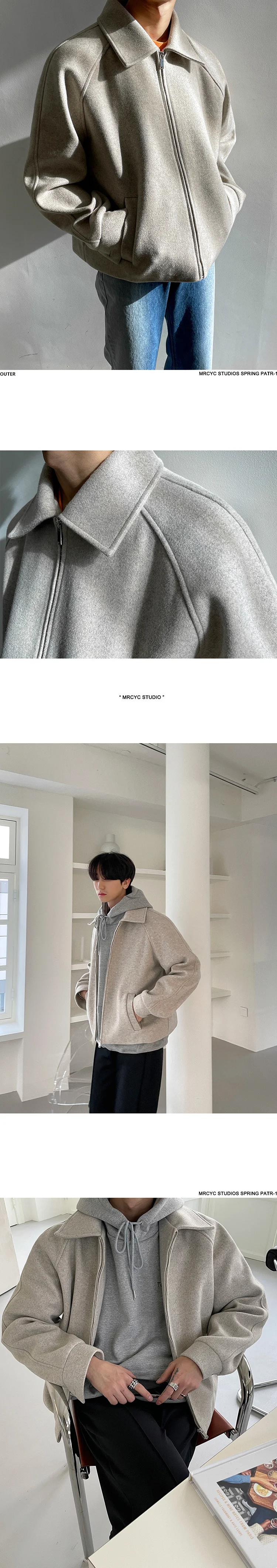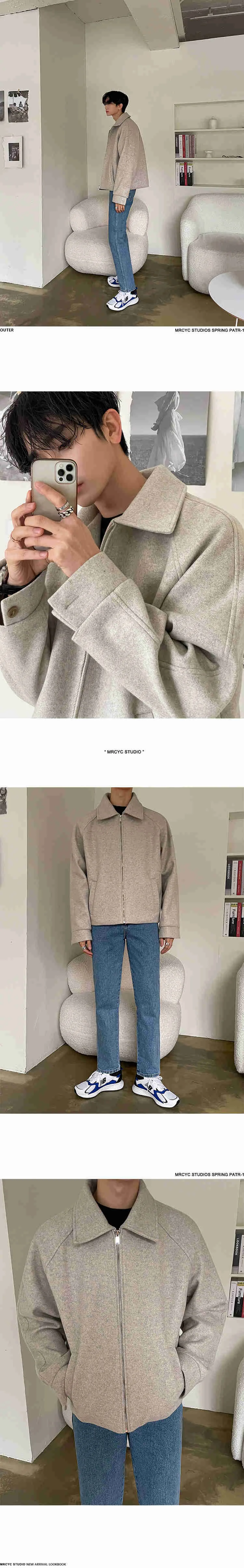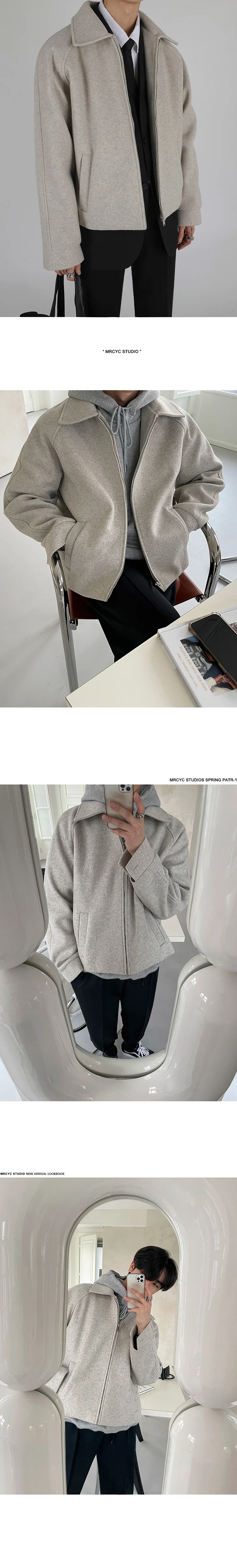 WIAOFELLAS - Men's Korean Loose Cut Design Zipped Jacket Woolen Cloth Short Coats Spring Thickening Lapel Jackets Chic Tops 2D1522