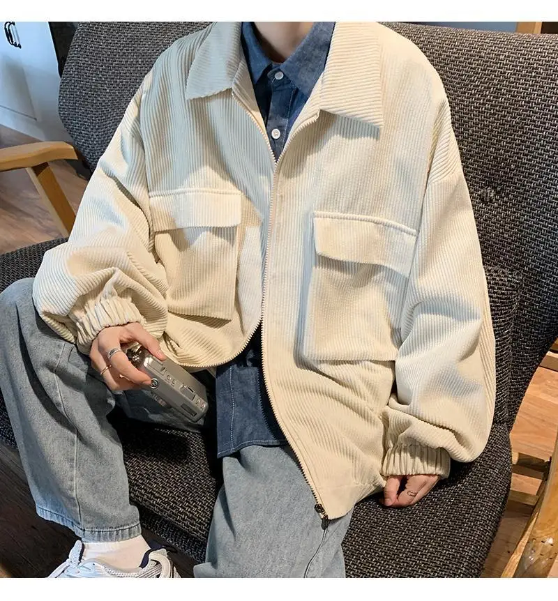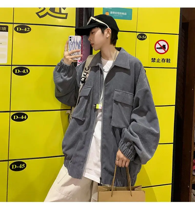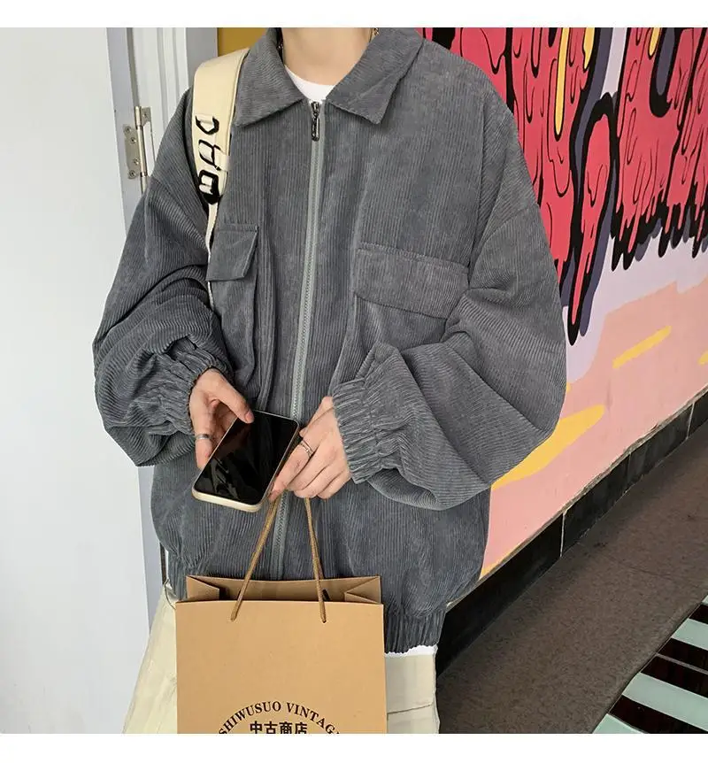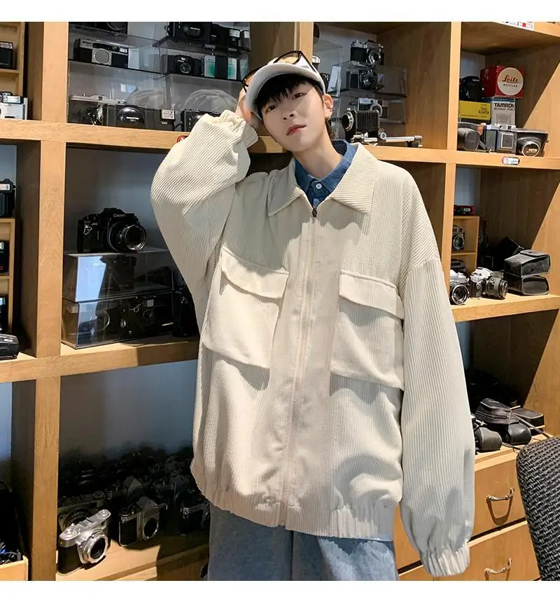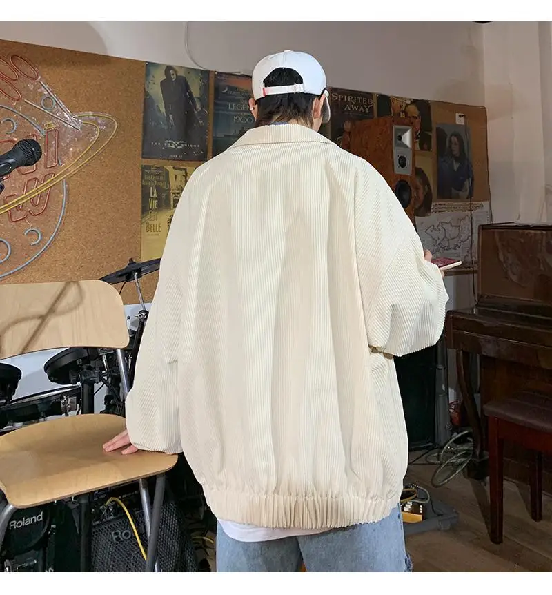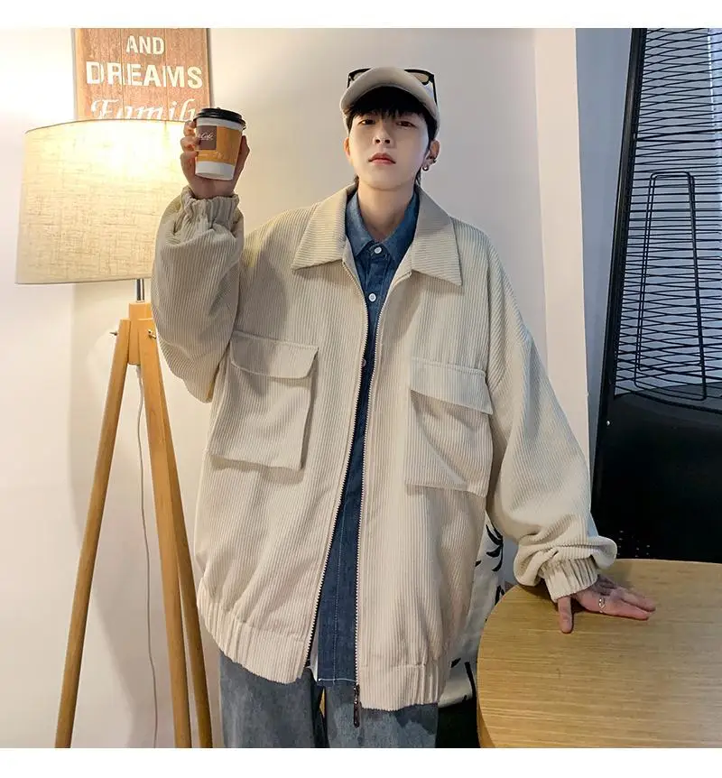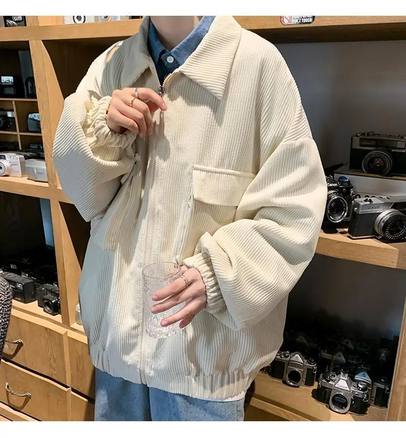 Wiaofellas Men's New Solid Corduroy Jacket Temperament Commuter Retro Casual Loose Street Top Coat