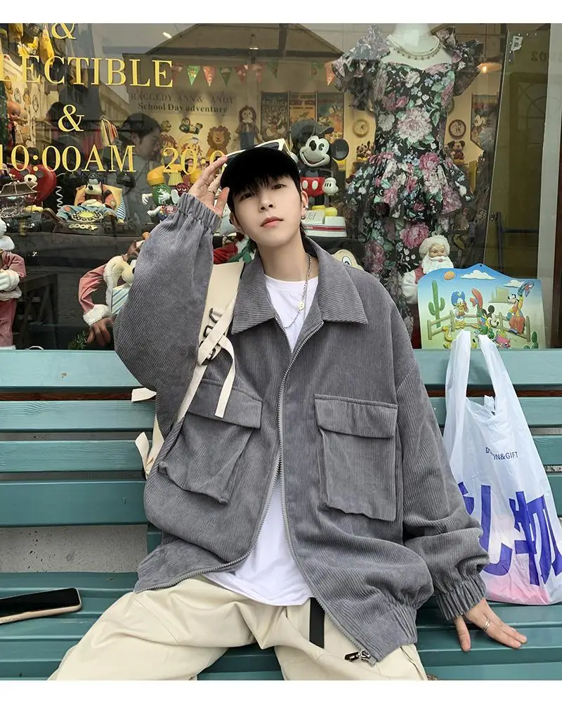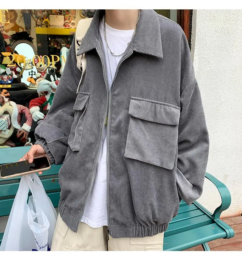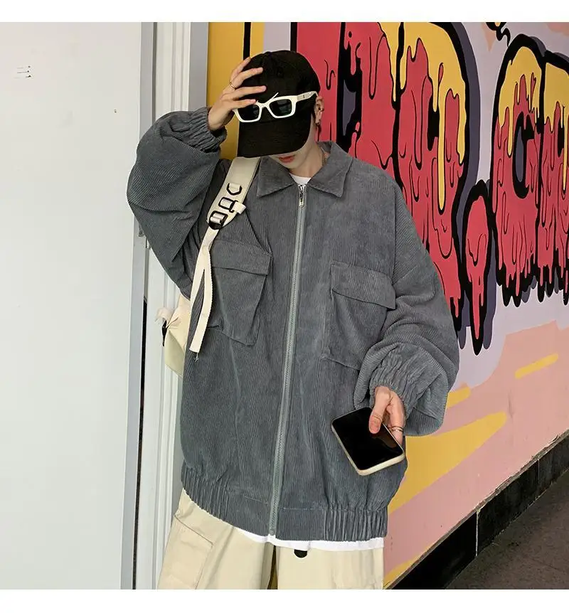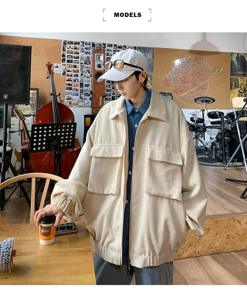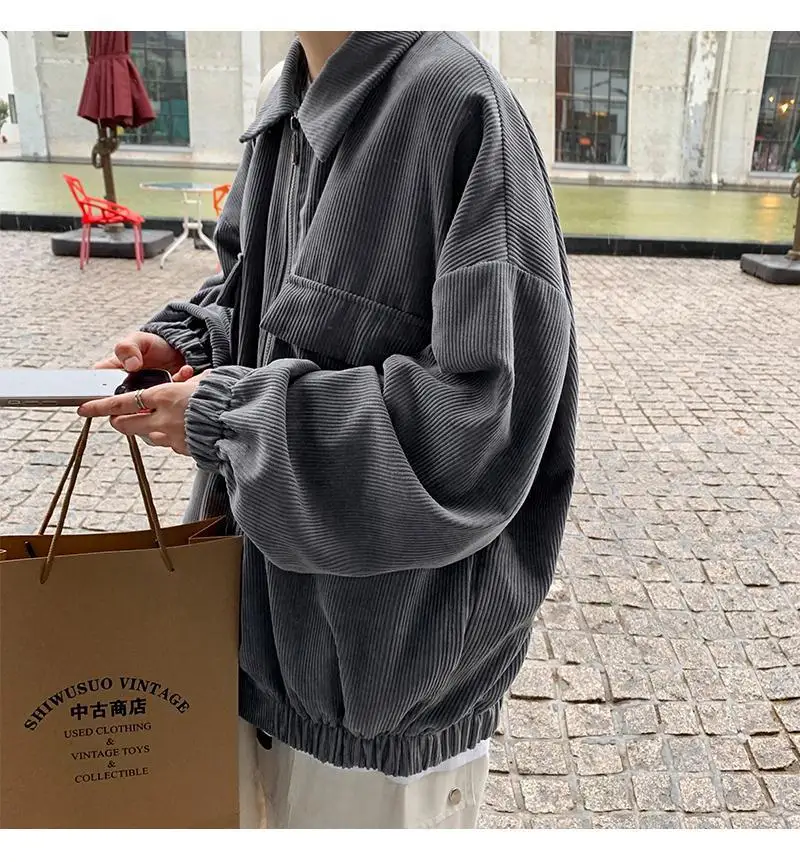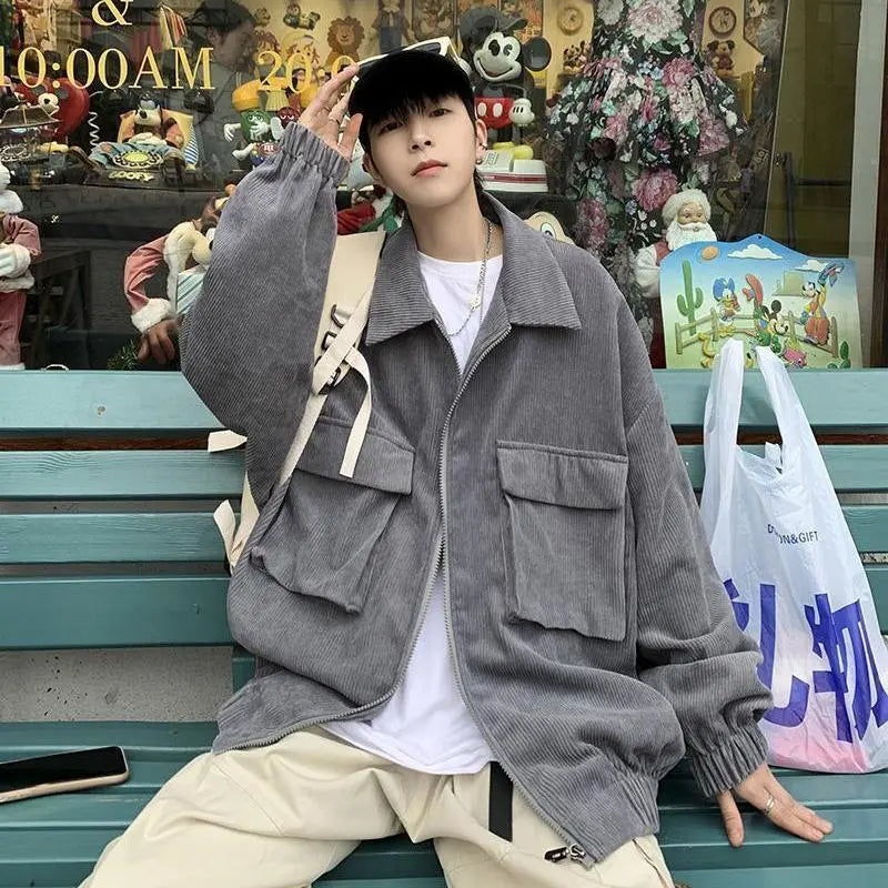 Wiaofellas Men's New Solid Corduroy Jacket Temperament Commuter Retro Casual Loose Street Top Coat