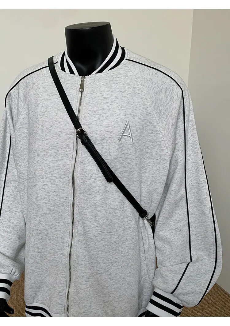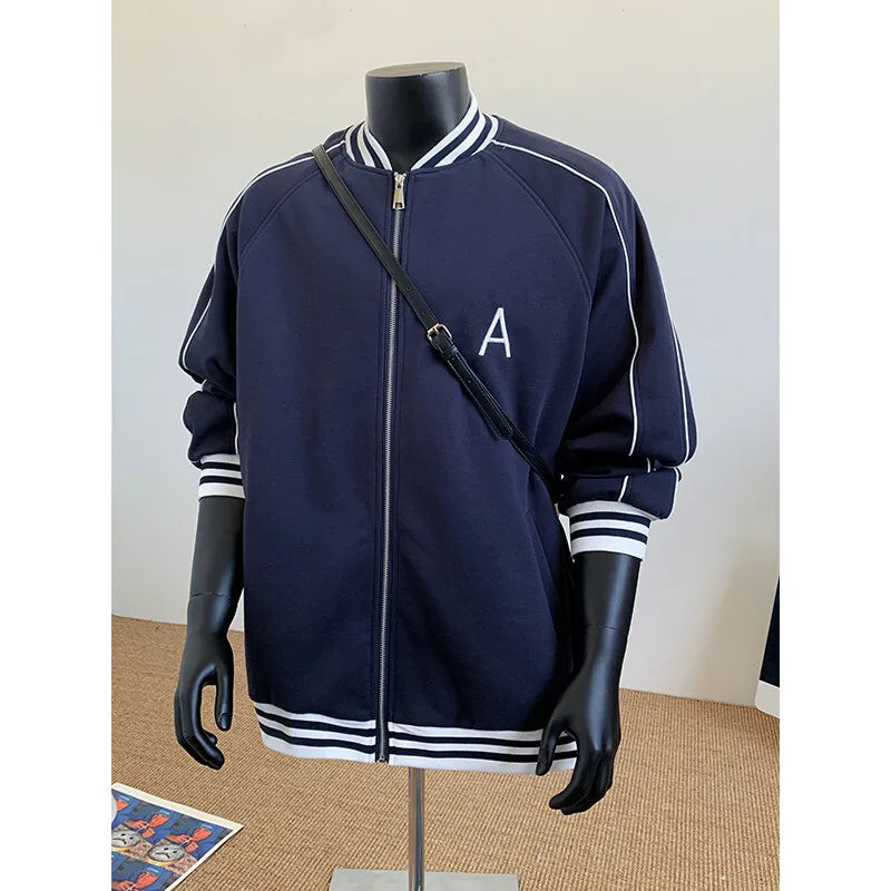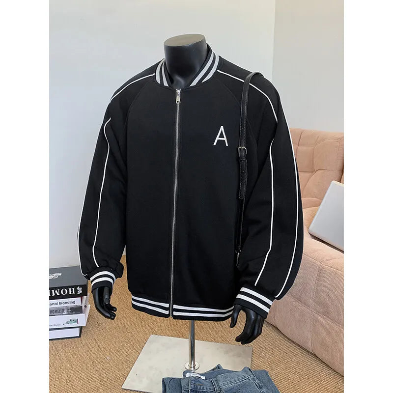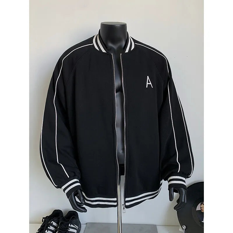 WIAOFELLAS - New Men's Casual Jacket Coat Embroidery Letter Logo Striped Patchwork College Baseball Jackets Zipper Outerwear Male Clothes